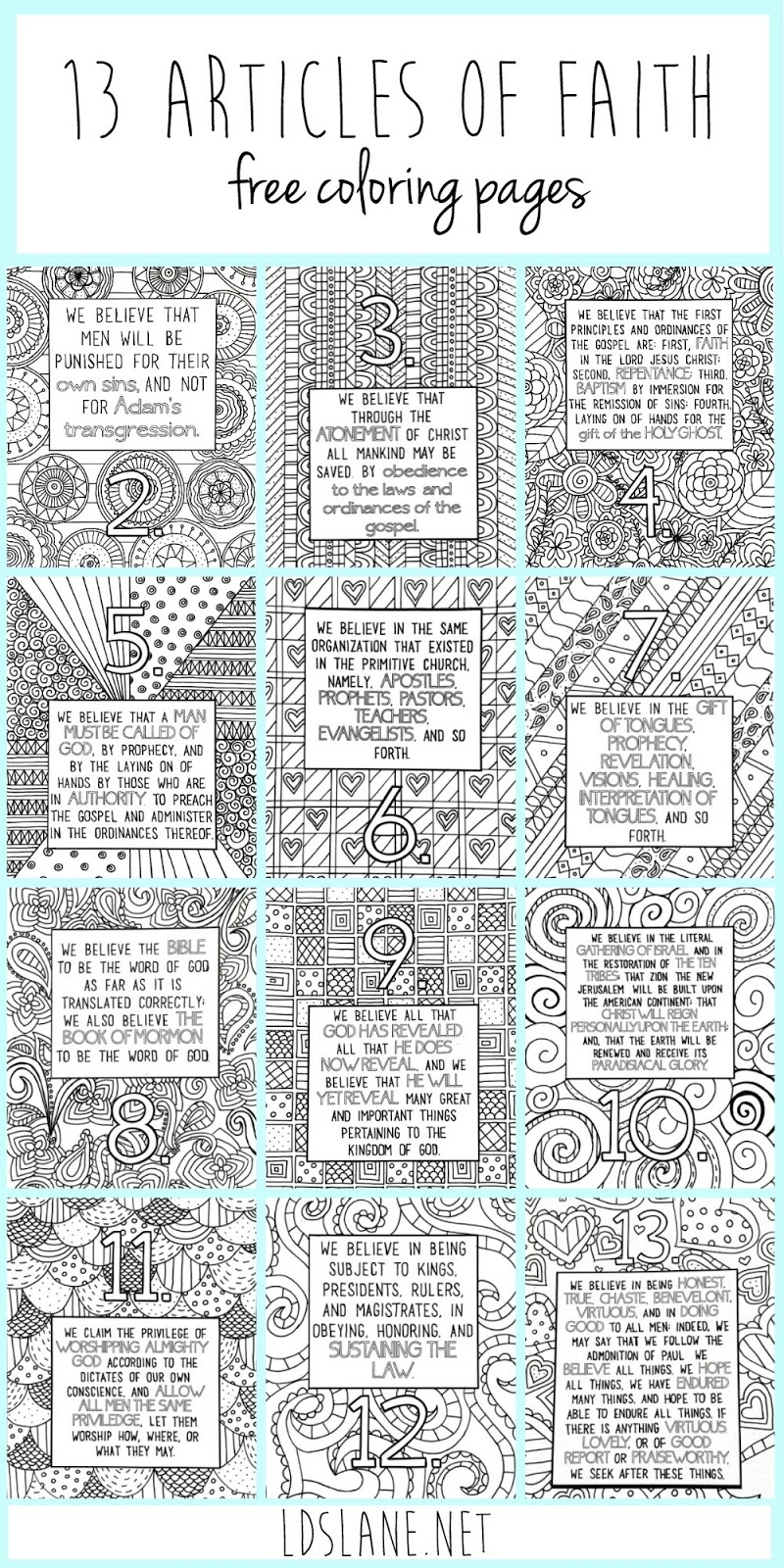 13 Articles Of Faith Lds Printable Printable Party Favors