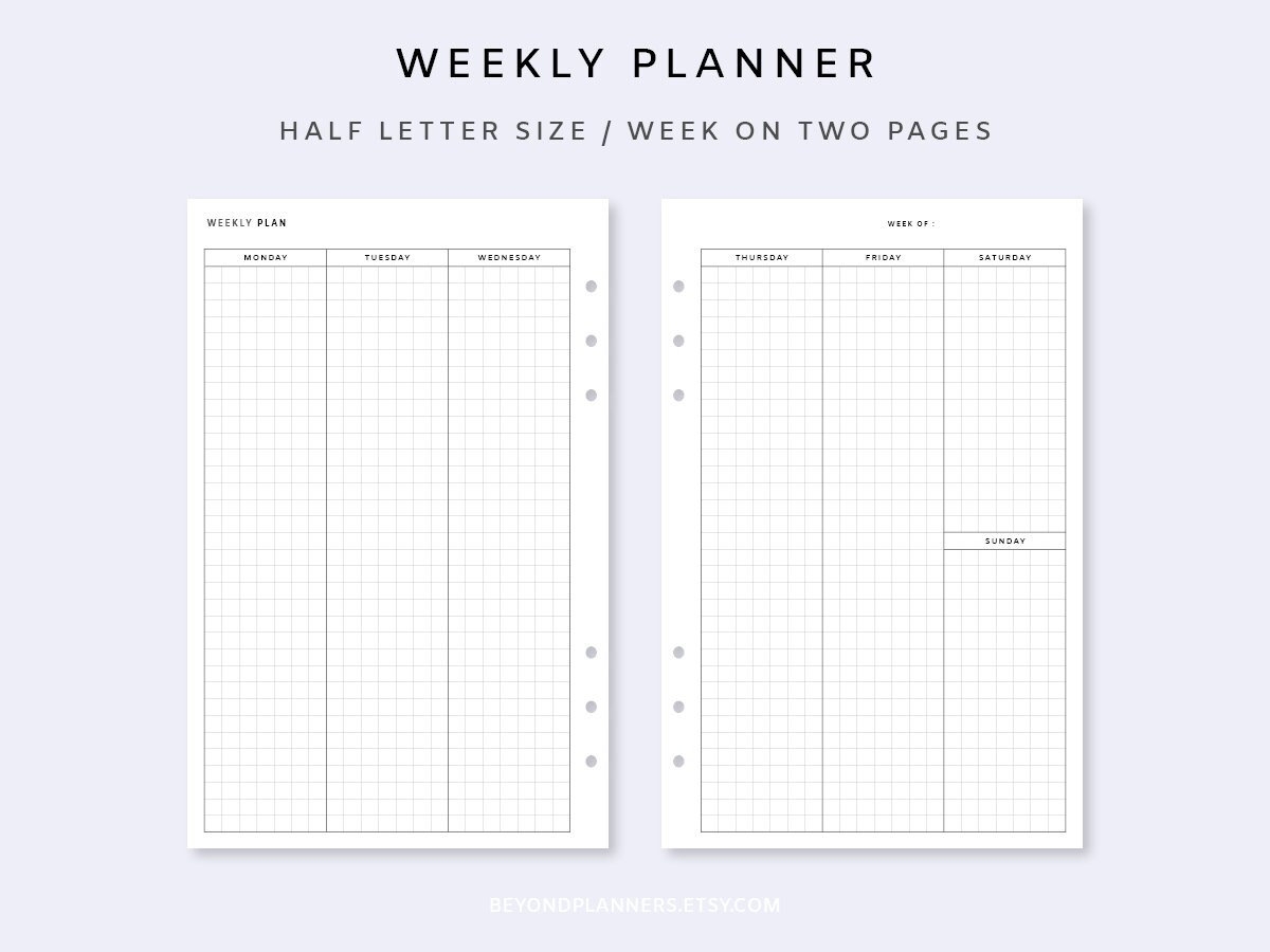 Weekly Planner Printable 2 Page Week On Two Pages Weekly