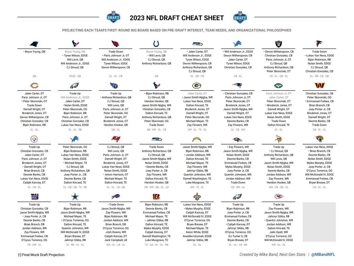 Don’t let the fast-paced nature of the NFL Draft catch you off guard. With our cheat sheet in hand, you can stay informed and make sense of the chaos as teams make their picks and trades throughout the draft.