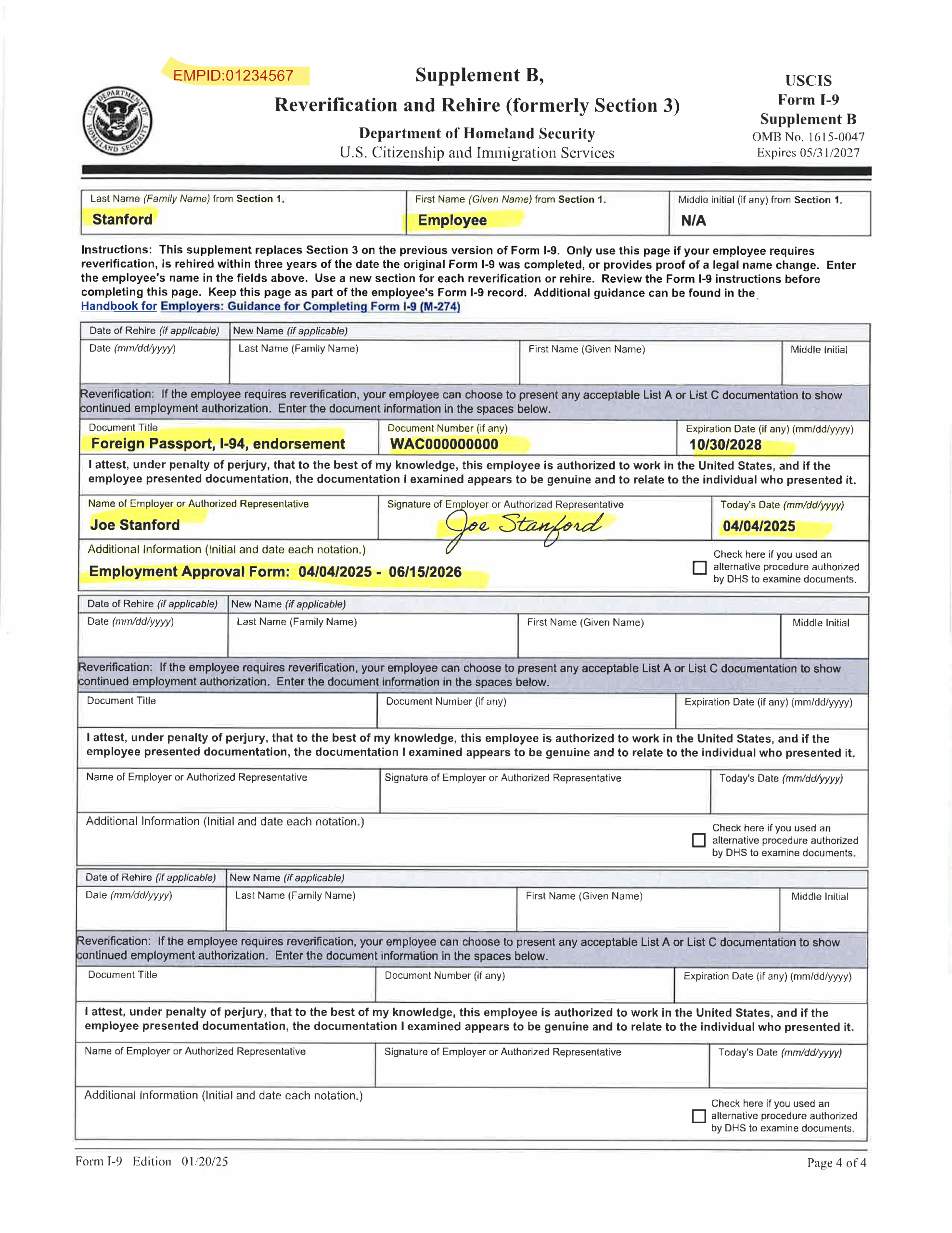 Examples Of Completed Form I 9 For Stanford