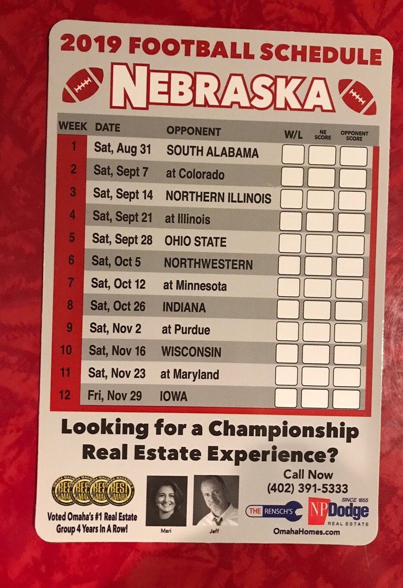 2019 NEBRASKA HUSKERS FOOTBALL SCHEDULE MAGNET Sponsored By NP DODGE Real Estate EBay