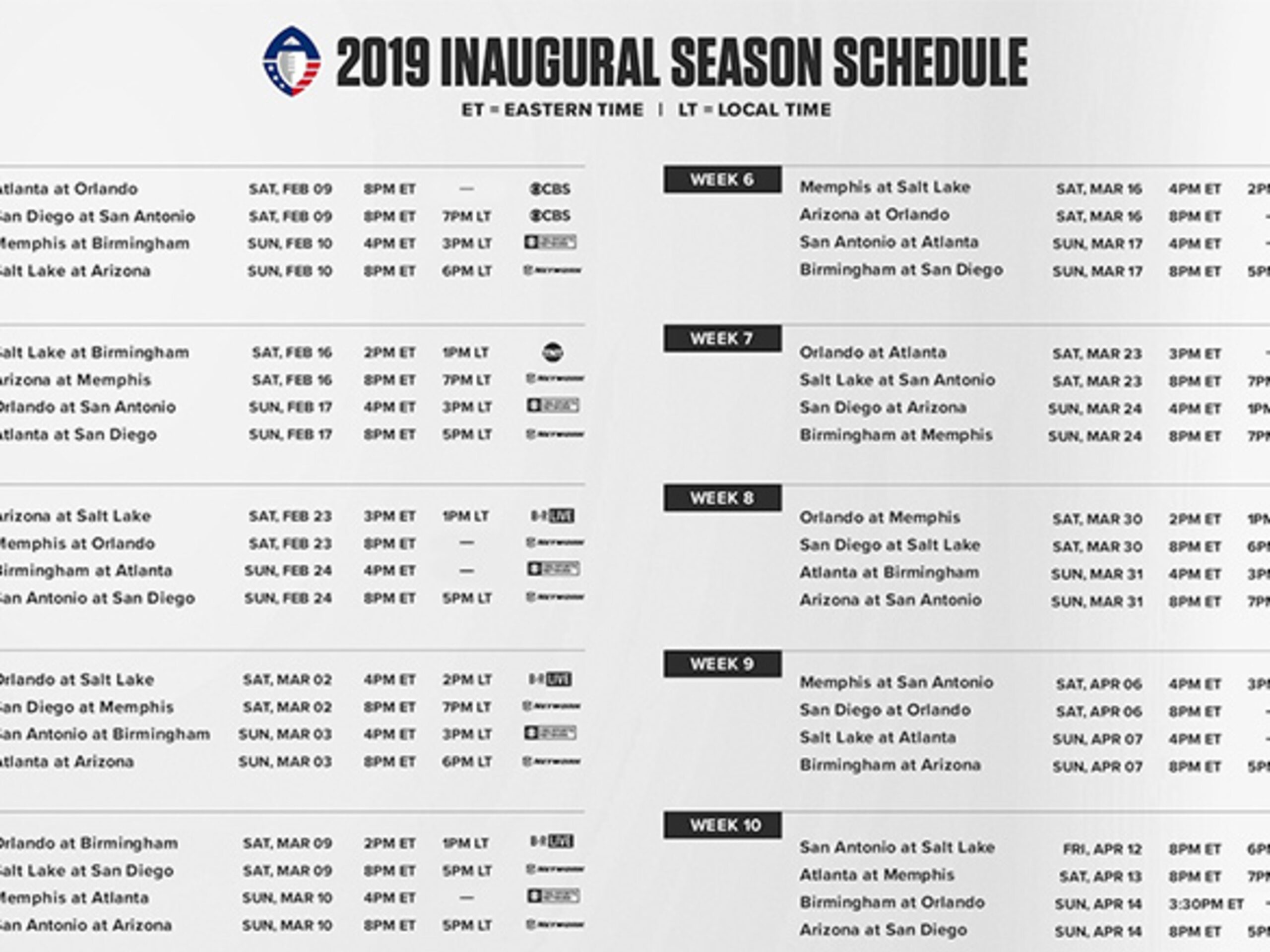 AAF Football 2019 Season Schedule For Alliance Of American Football Athlon Sports