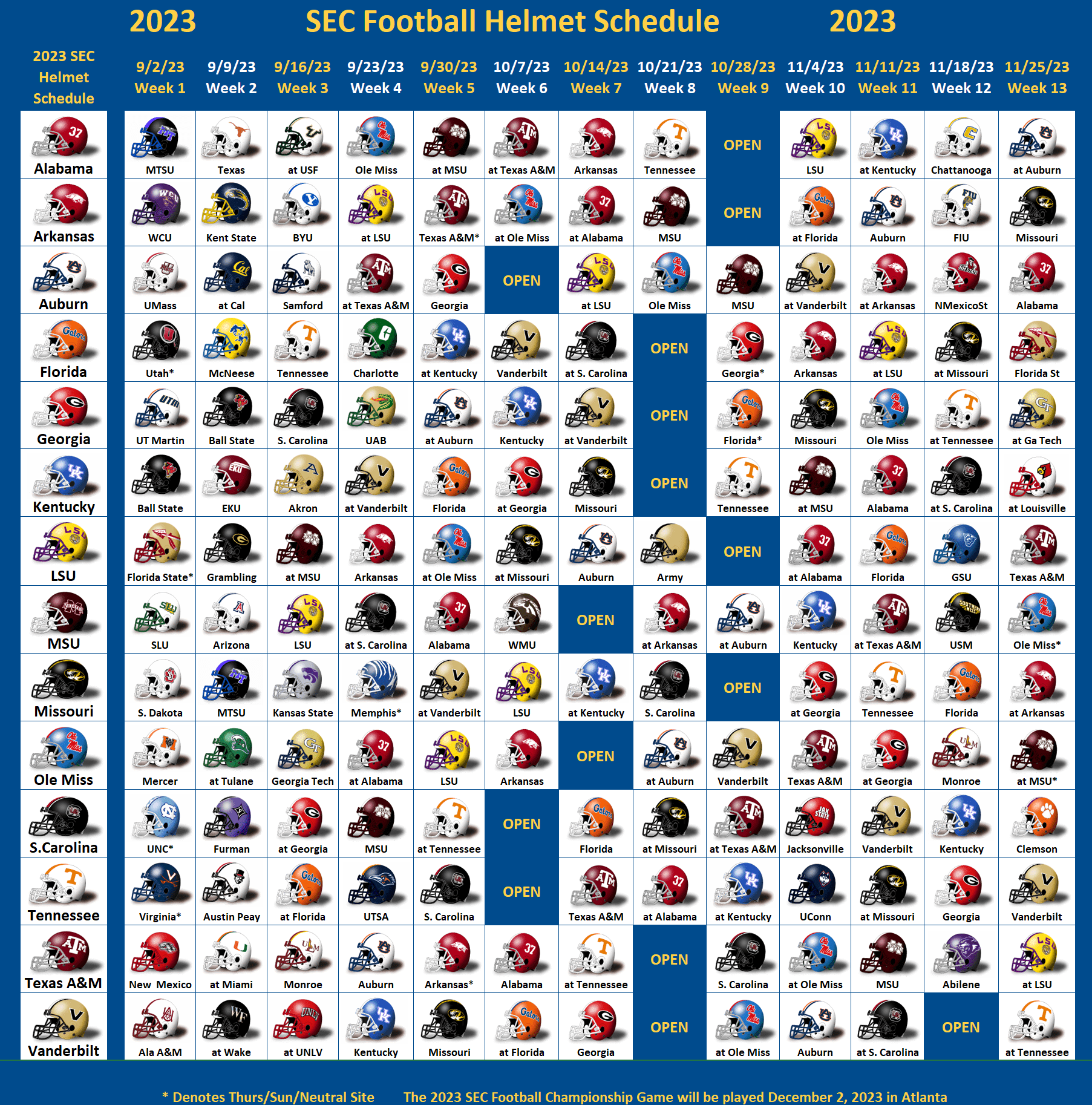 Whether you’re hosting a watch party, going to a game, or just tuning in from the comfort of your couch, having the schedule grid on hand will make it easy to stay on top of all the football excitement this season.