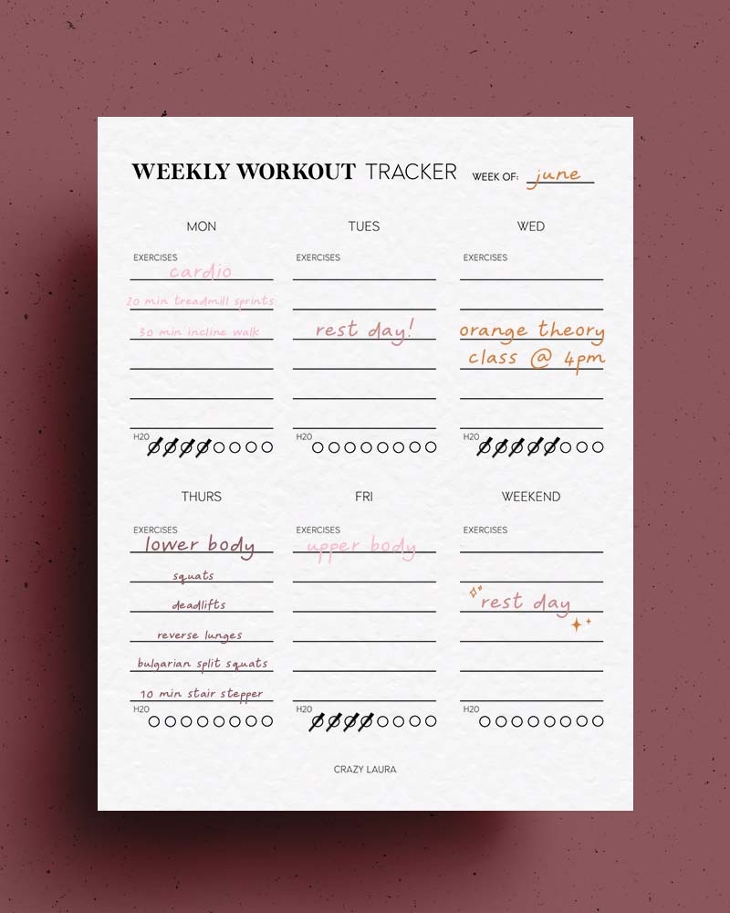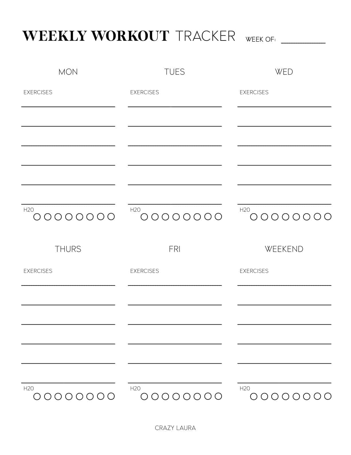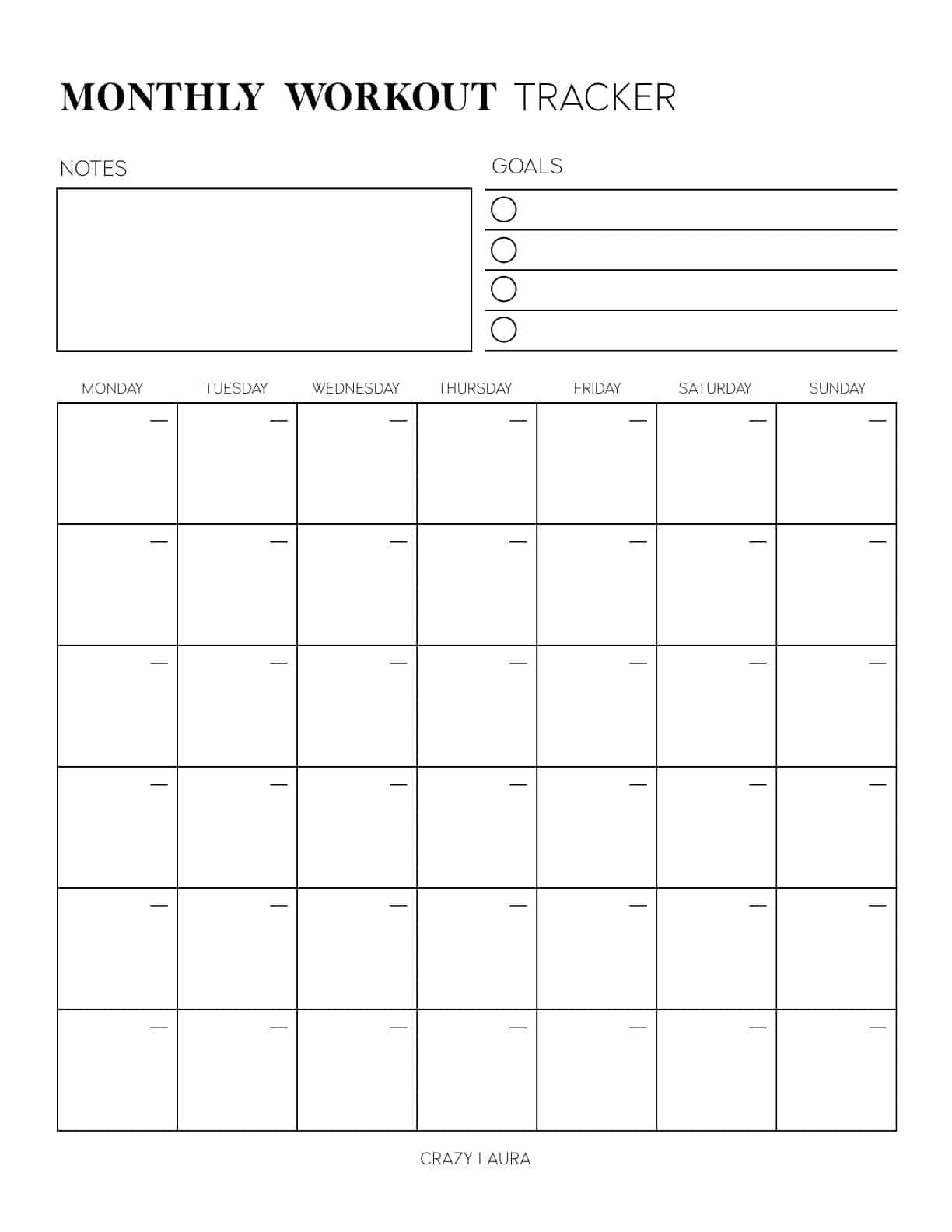 Free Workout Tracker Printable Weekly U0026 Monthly Versions Crazy Laura