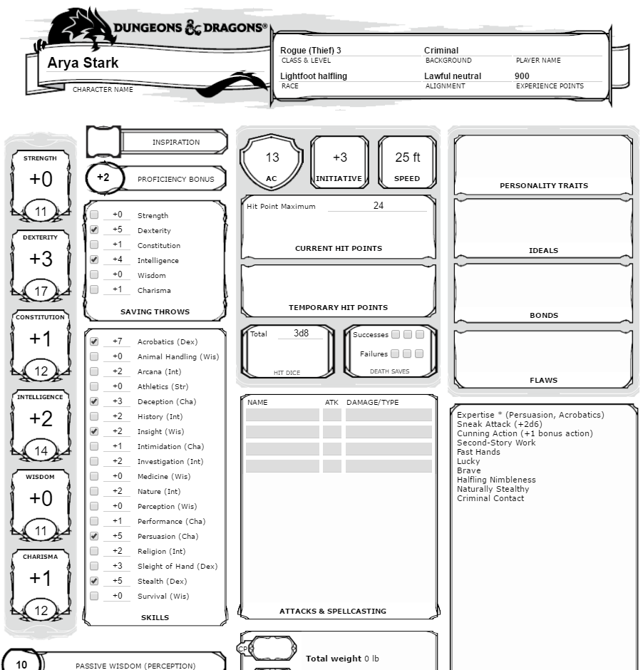 3 5e character sheet printable