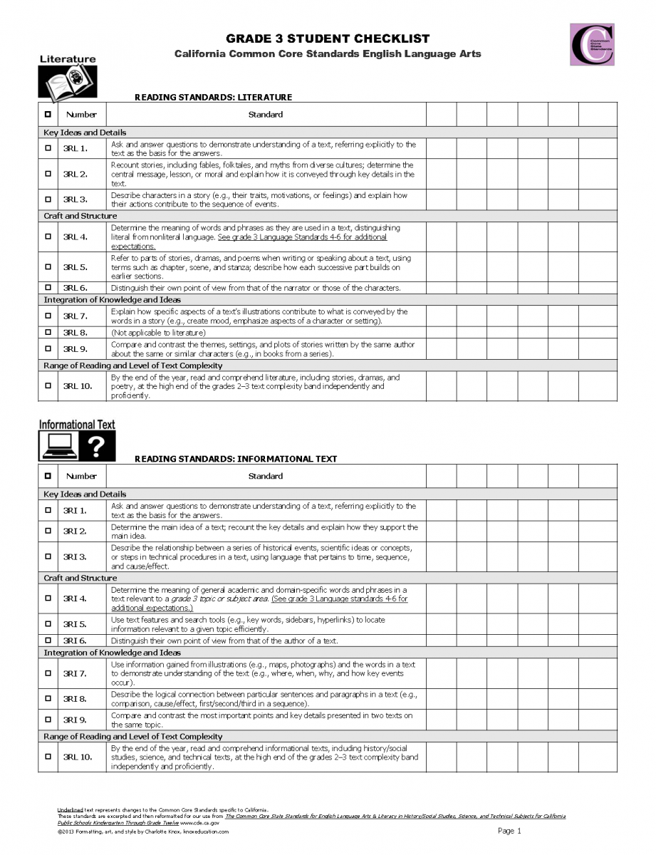 ELA Standards Checklist Grade 3 Knox Educational Associates