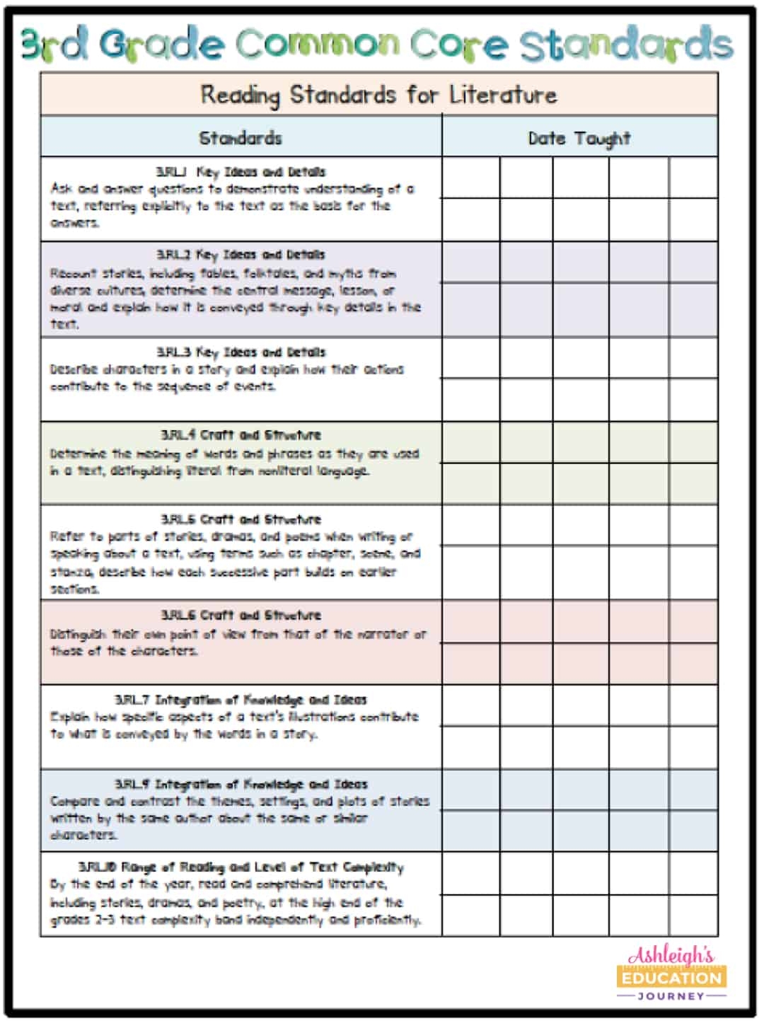 3rd Grade Common Core Standards Printable