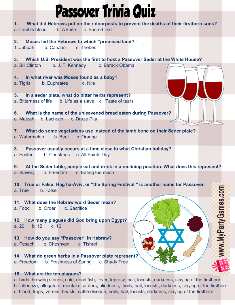 Free Printable Passover Trivia Quiz With Answer Key