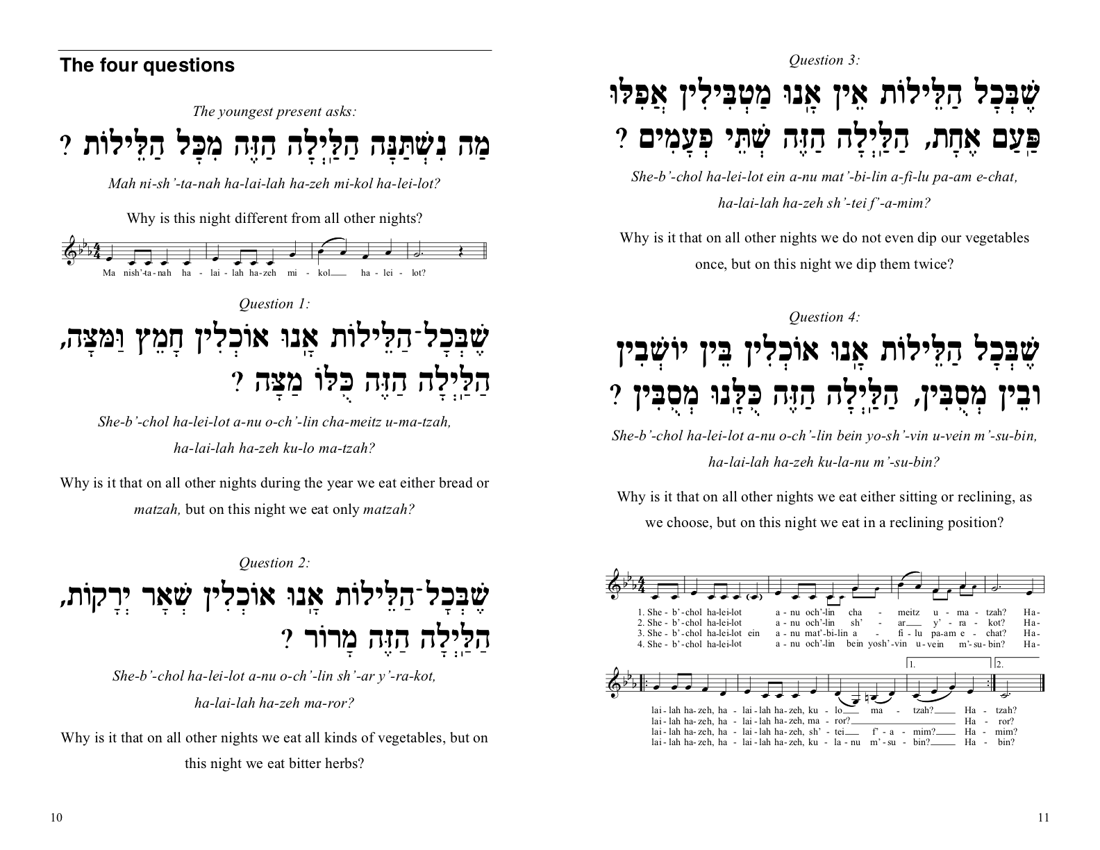 4 questions passover printable
