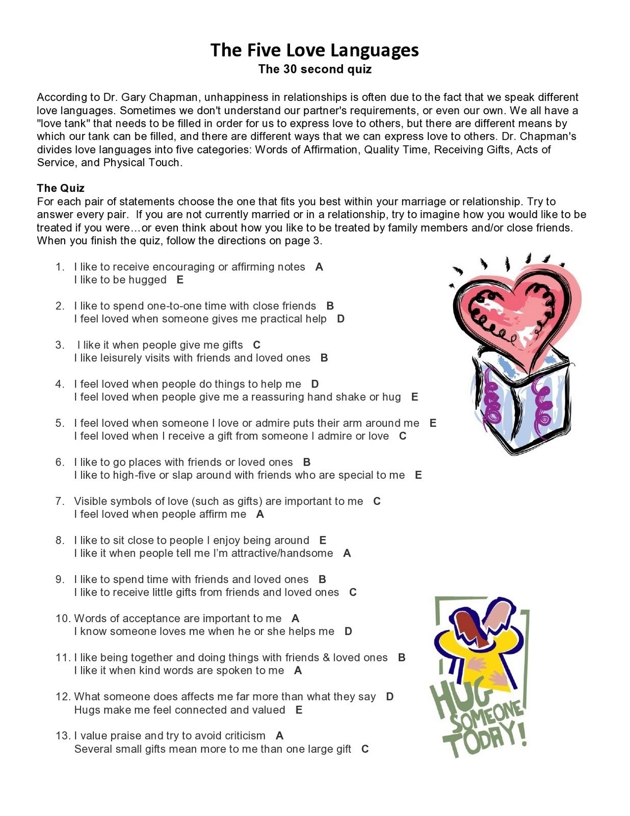 5 Love Languages Quiz PDF Individual Therapy And Couples Therapy Worksheets Library