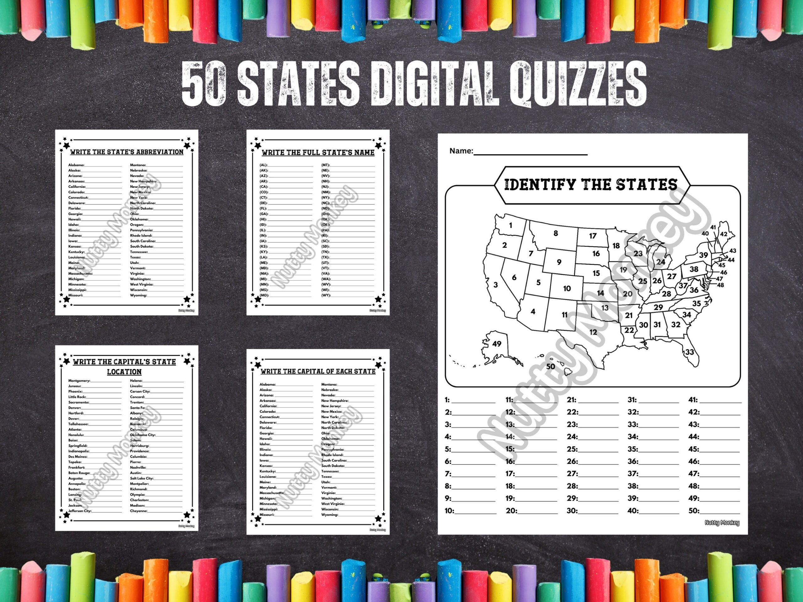 United States US 50 States And Capitals Quiz Test Worksheets The Little Ladybug Shop