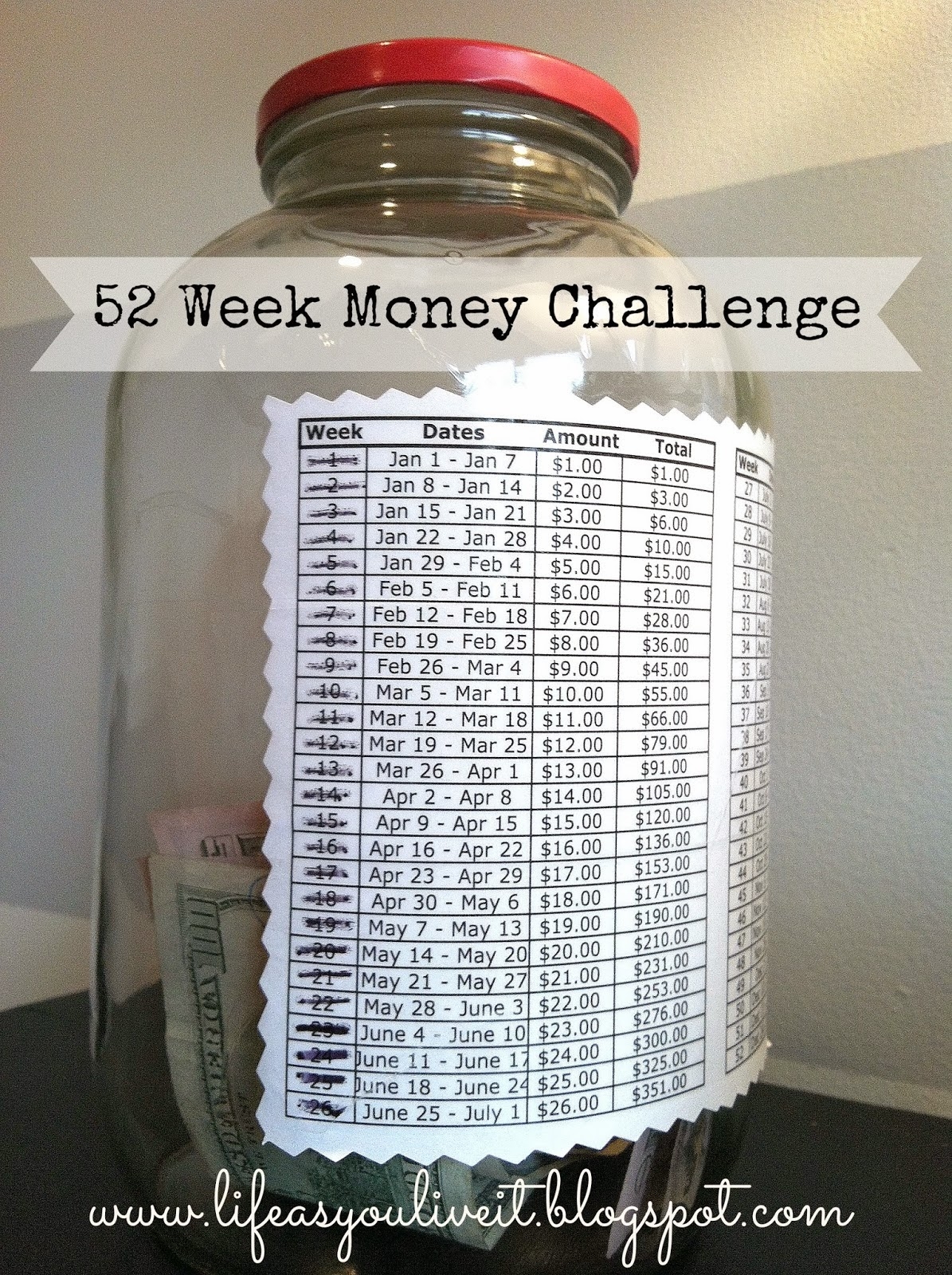 LIFE AS YOU LIVE IT 52 WEEK MONEY SAVINGS CHALLENGE