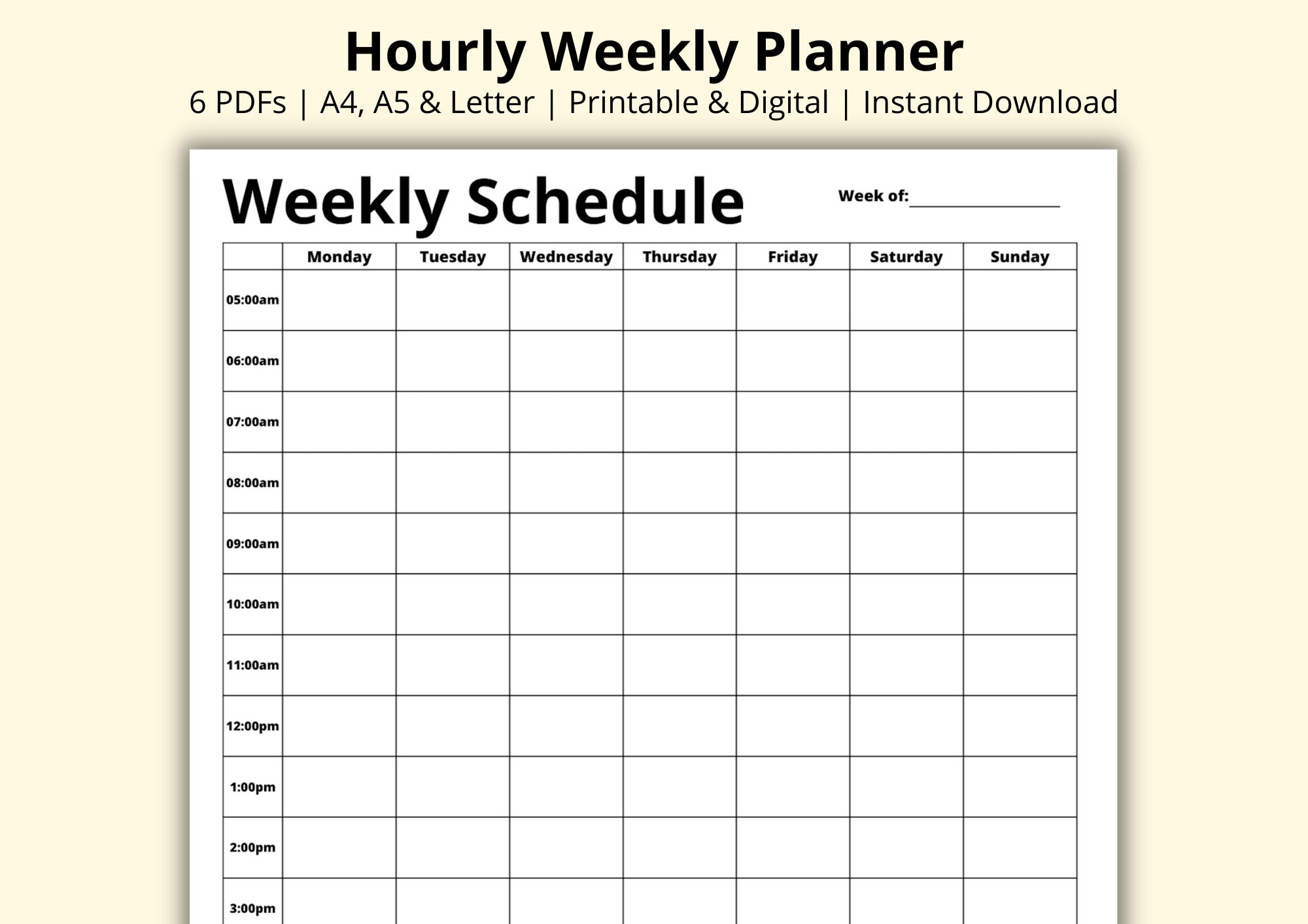 Hourly Weekly Planner 7 Day Timetable Week At A Glance Study Time Block Template Productivity Planner Printable digital A4 a5 letter Etsy