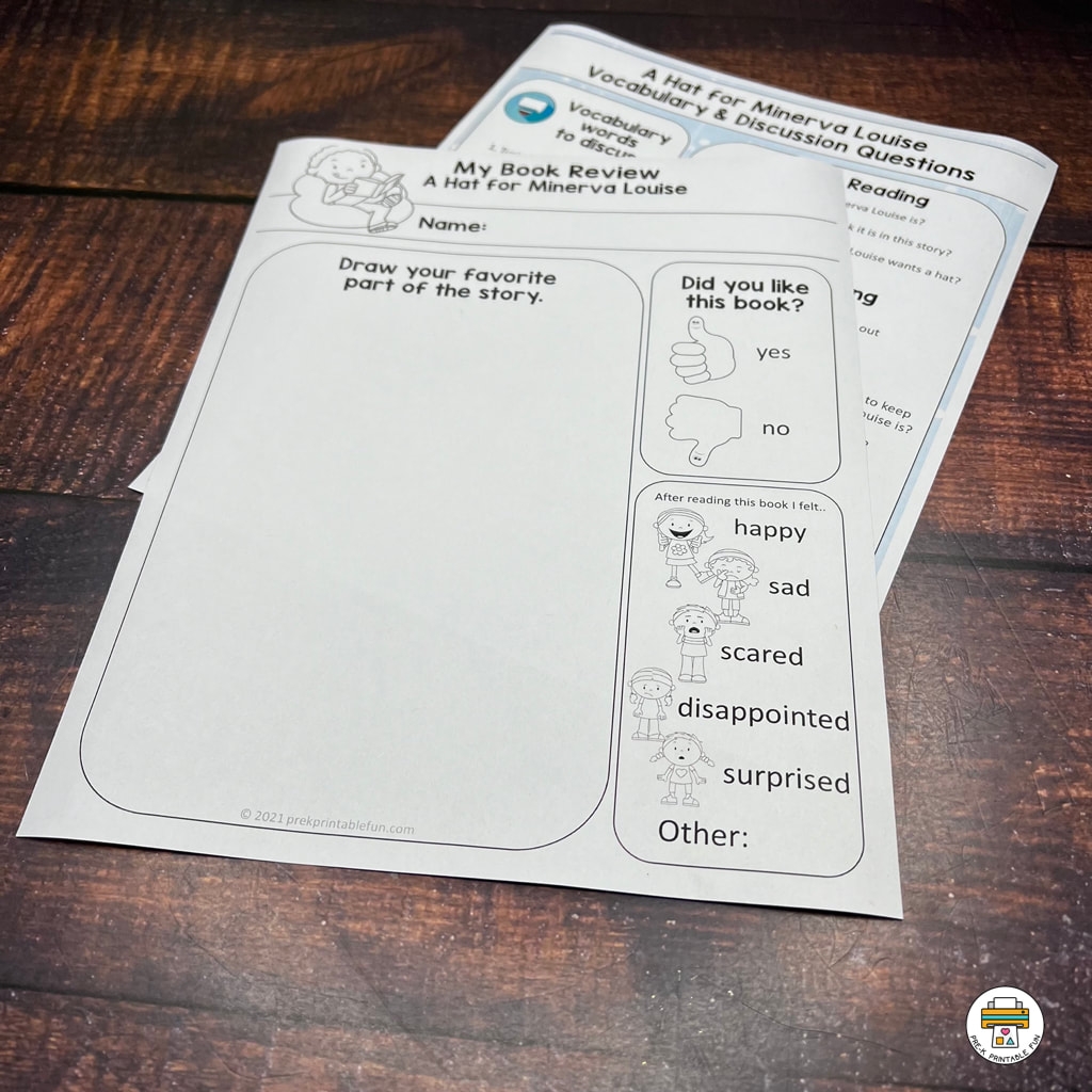 Printable Preschool A Hat For Minerva Louise Book Companion Set