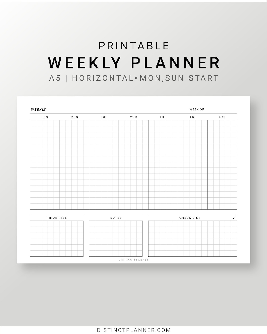 Undated Weekly Planner Printable A5 Horizontal Weekly Inserts Minimalist Weekly Journal Sun Mon Start Square Grid Digital Planner PDF Etsy