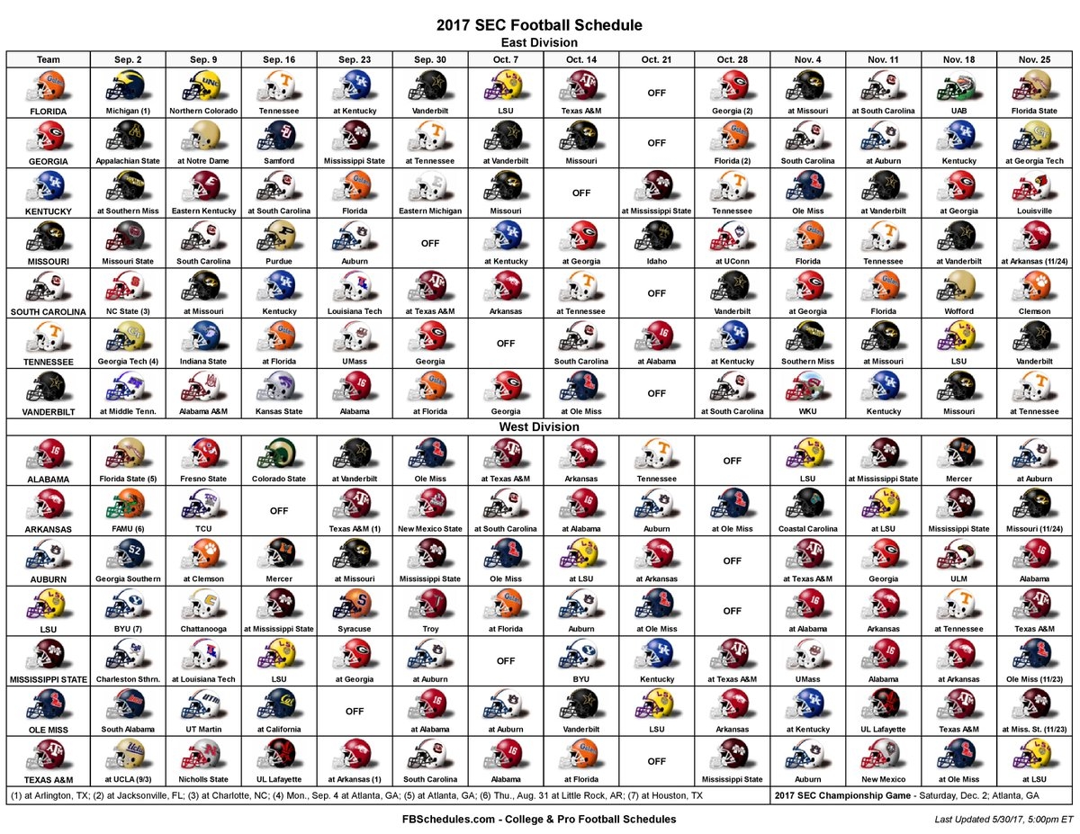 Alabama Football Schedule 2017 Printable