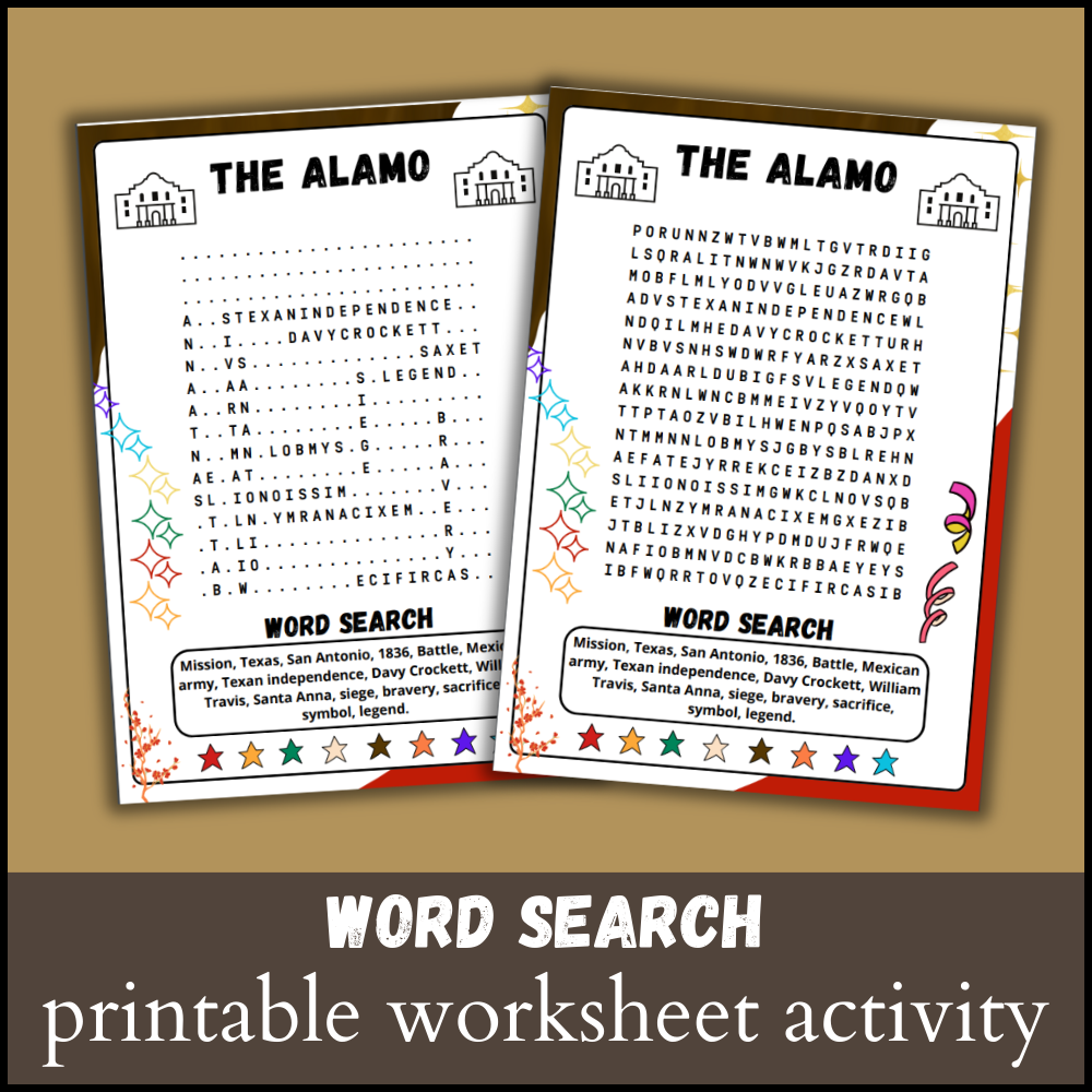 The Alamo Word Search Puzzle Worksheet Activity US History Wordsearch Made By Teachers