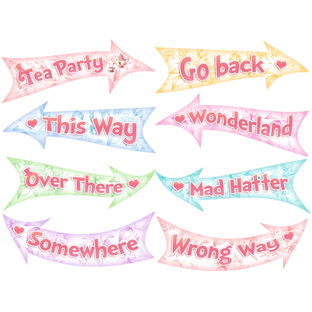 Alice In Wonderland Arrows Instant Download Alice Birthday Party Directional Signs Mad Hatter Tea Party Decor Wonderland Decorations Etsy