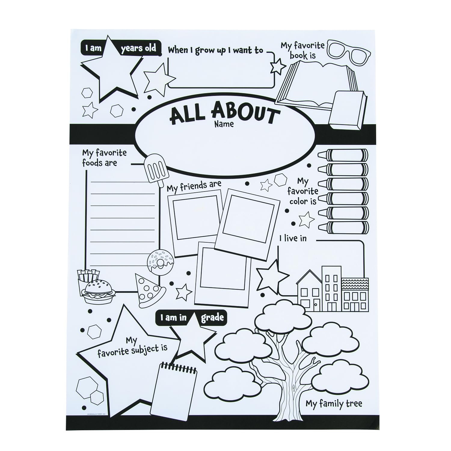 Amazon Fun Express All About Me Posters For Kids 30 Color Your Own Star Posters DIY School Classroom Daycare Preschool Kindergarten Activities Office Products