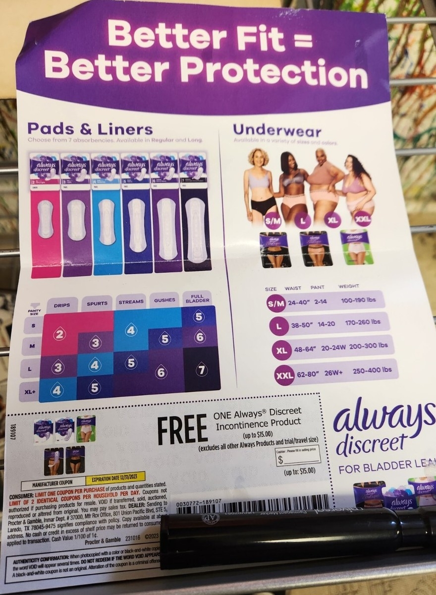 Always Discreet Incontinence Product Liners Pads Underwear 4 Women 15 Coupon EBay