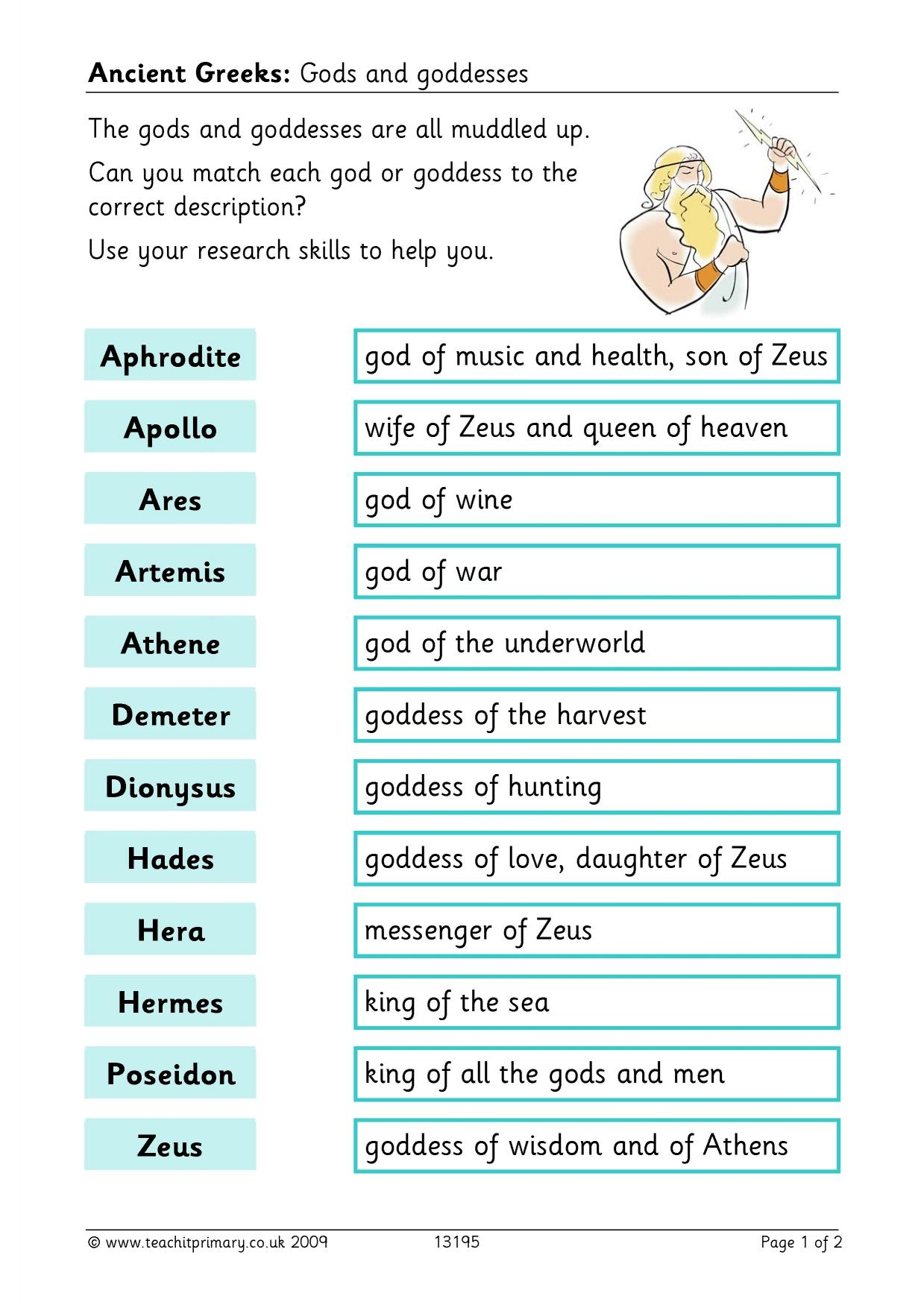 Ancient Greek Gods And Goddesses Quiz KS2 History Teachit Worksheets Library
