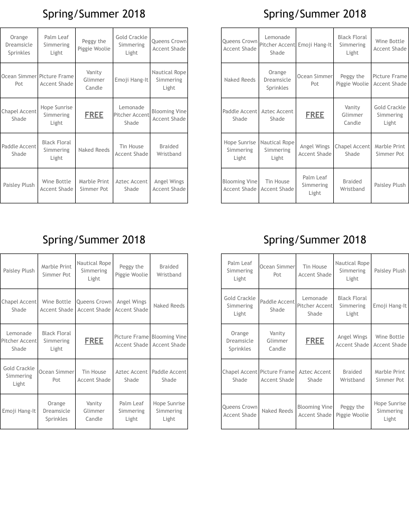 Spring Summer 2018 Bingo Cards WordMint