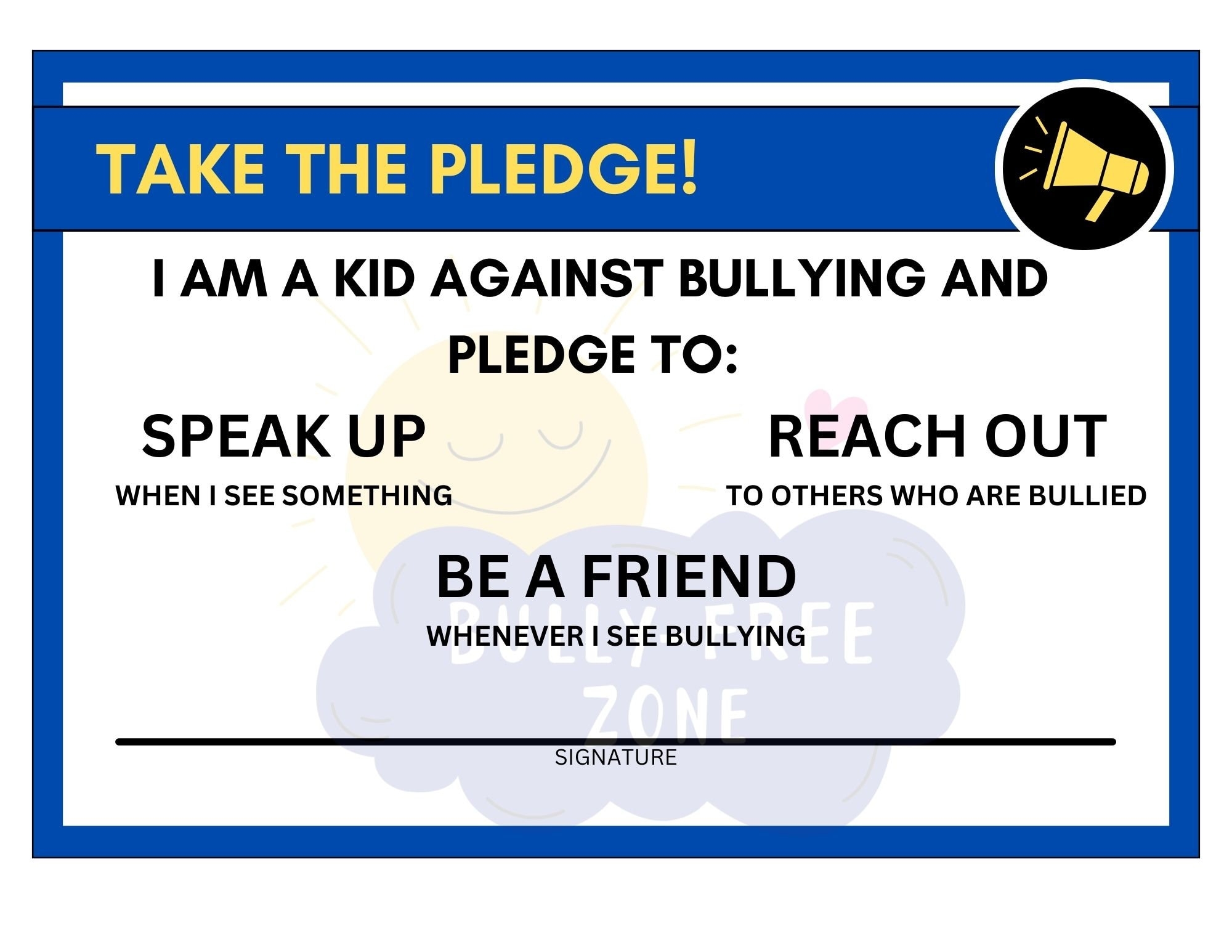 Join us in taking the anti-bullying pledge today. Together, we can make a difference and create a brighter future for everyone. Download your printable pledge now and start making a positive impact in your community!