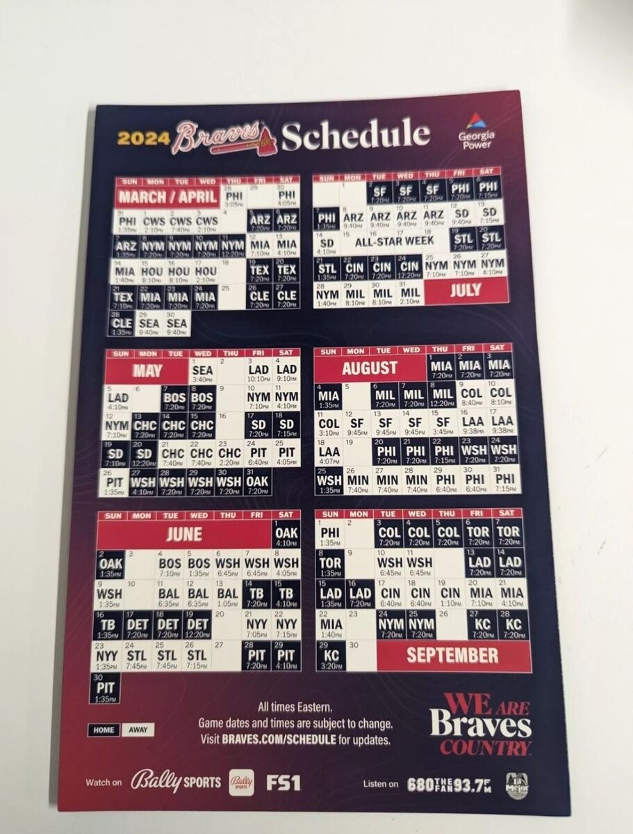 MLB ATLANTA BRAVES 2024 MAGNET SCHEDULE New Ready To Ship EBay Worksheets Library