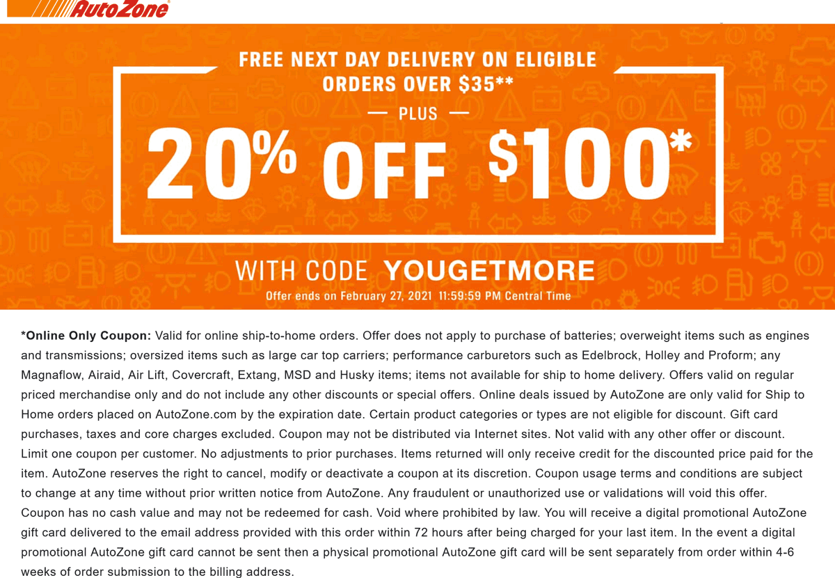 20 Off 100 Online At AutoZone Via Promo Code YOUGETMORE