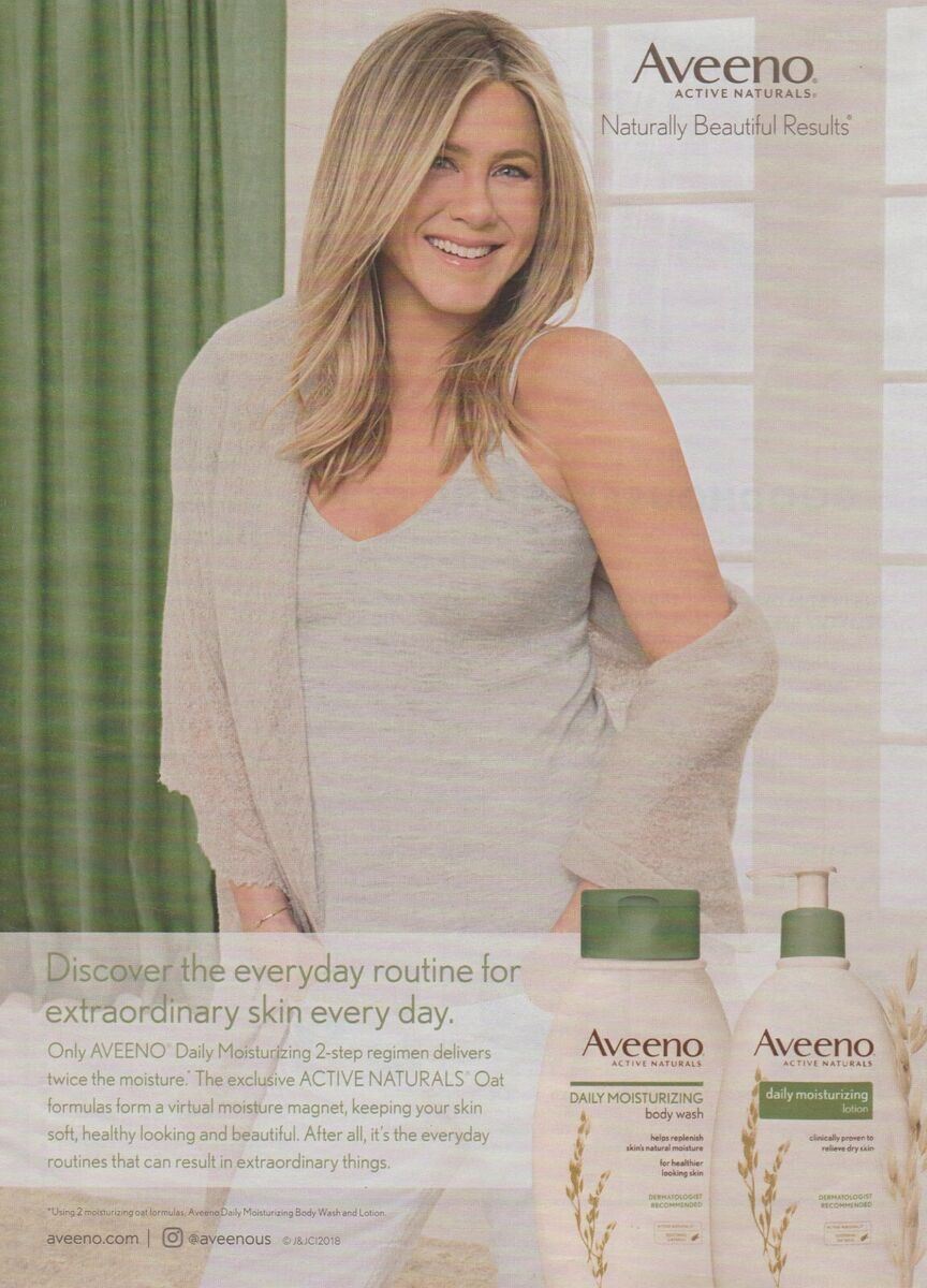 2019 Aveeno Body Skin Lotion Friends Actress Jennifer Aniston Print Ad Photo