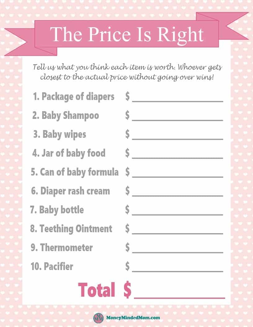 Free Printable Baby Shower Price Is Right Game Play Party Plan