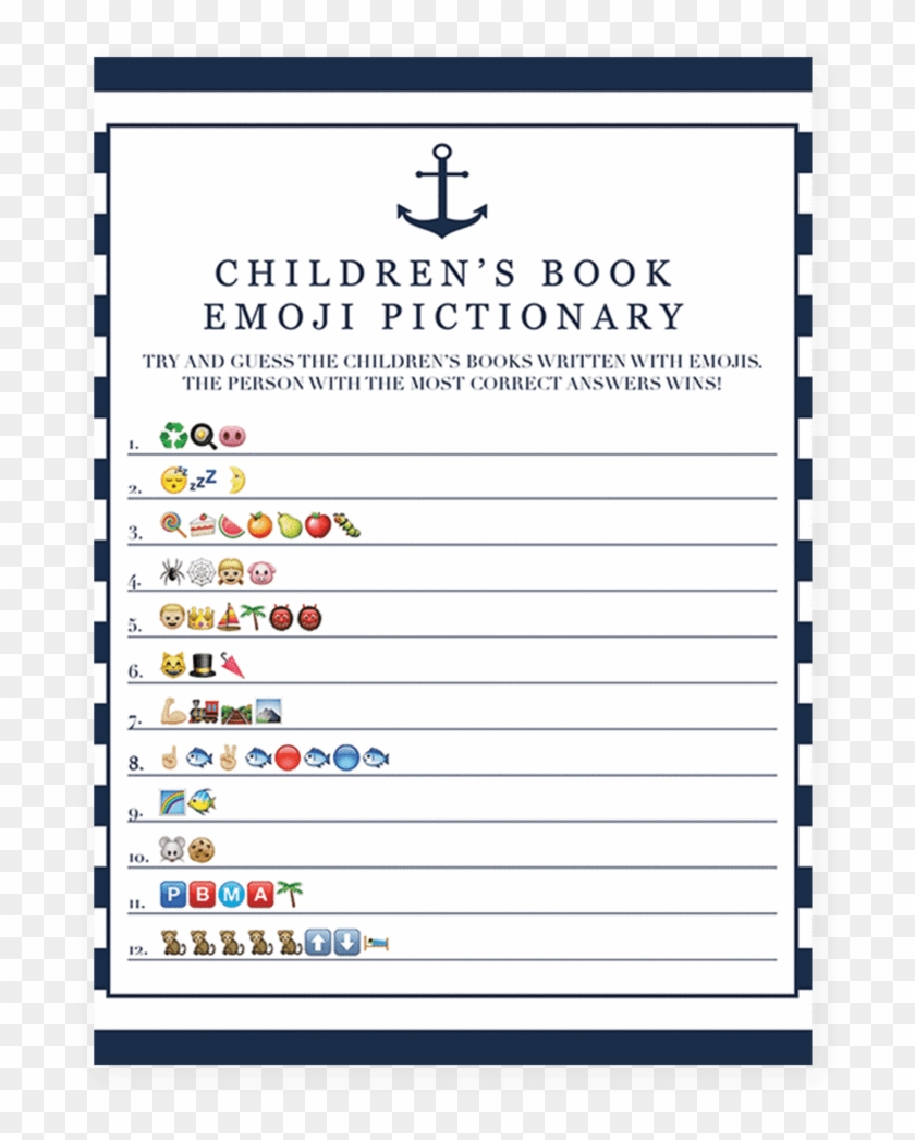 Emoji Pictionary For Boy Baby Shower Printable By Littlesizzle Game Free Transparent PNG Clipart Images Download
