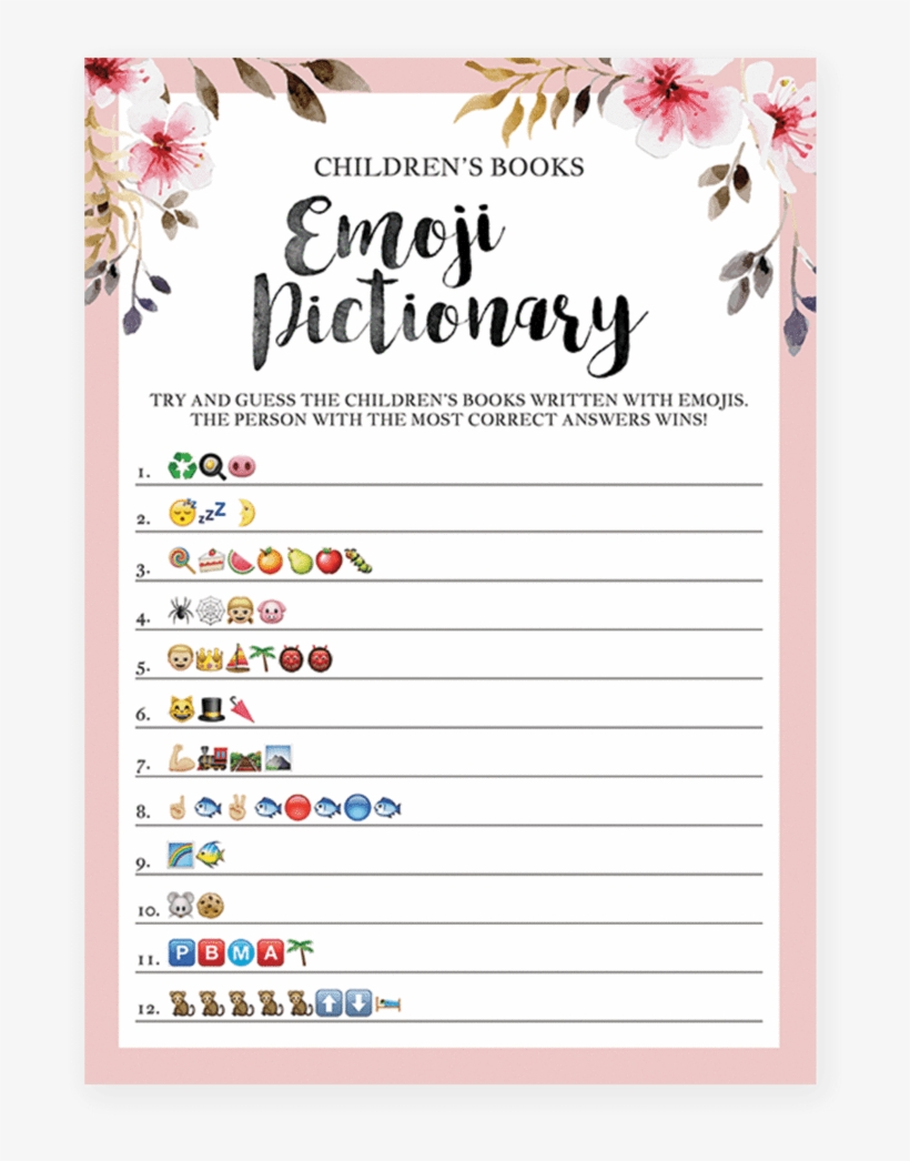 To play baby shower emoji pictionary, simply print out the game sheets and distribute them to your guests. Set a time limit for each round, and have everyone write down their guesses for each emoji clue. The person with the most correct answers wins a prize!