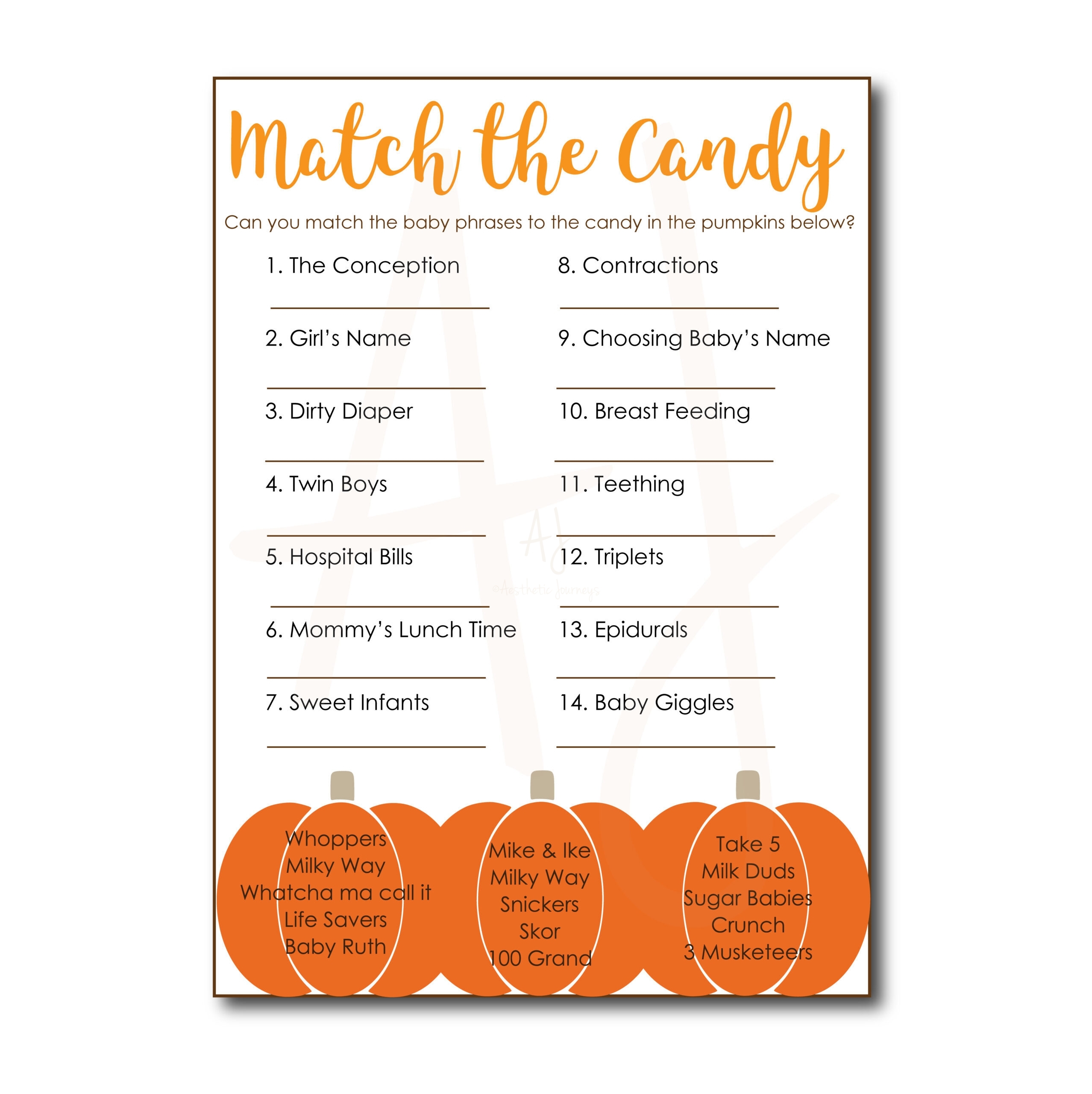 Printable Match The Candy Baby Shower Game AJ Designs