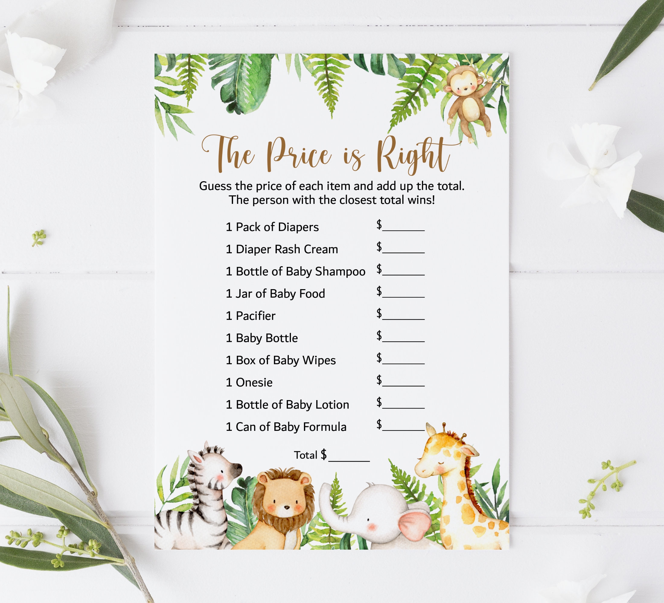 The Price Is Right Game Jungle Baby Shower Safari Baby Shower Game