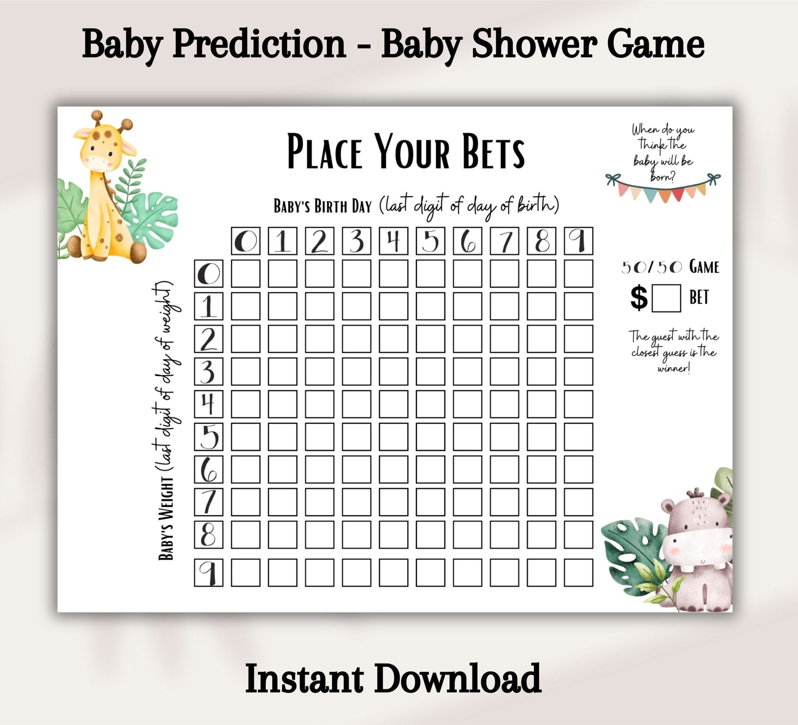 Baby Birth Pool Guess Game Pregnancy Due Date Shower Party Betting Games Chart Instant Digital Download Shower Favors Includes Gender Etsy