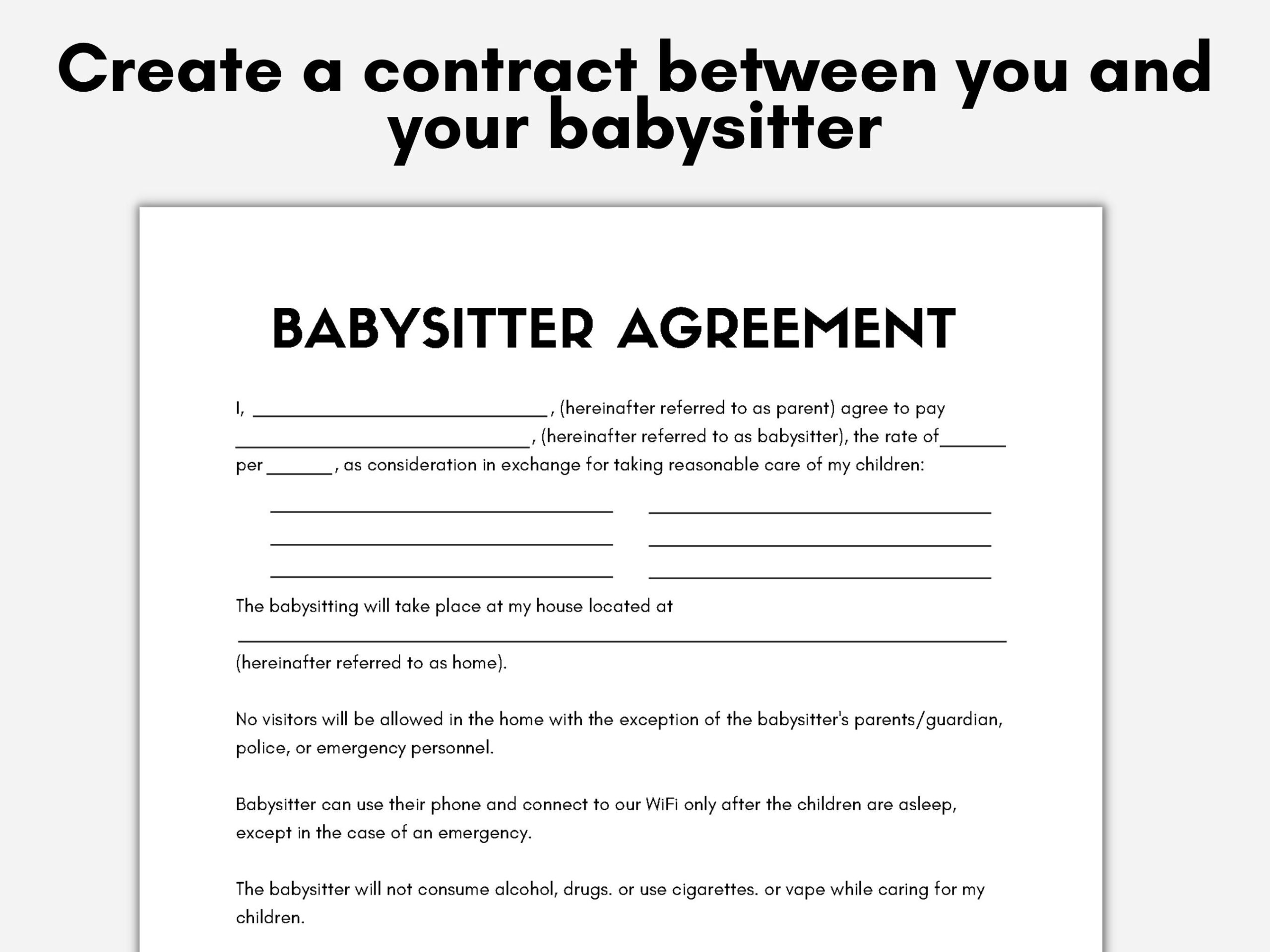 Babysitting Contract Template Nanny Services Contract Agreement BabySitter Agreement Form Editable PDF File Babysitter Binder Forms