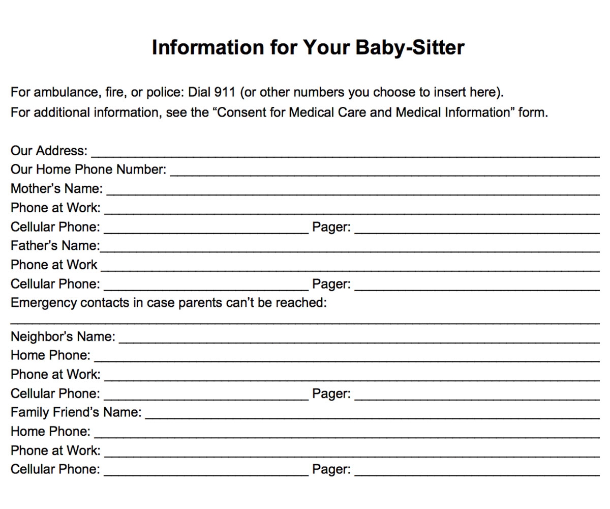 babysitter forms printable free