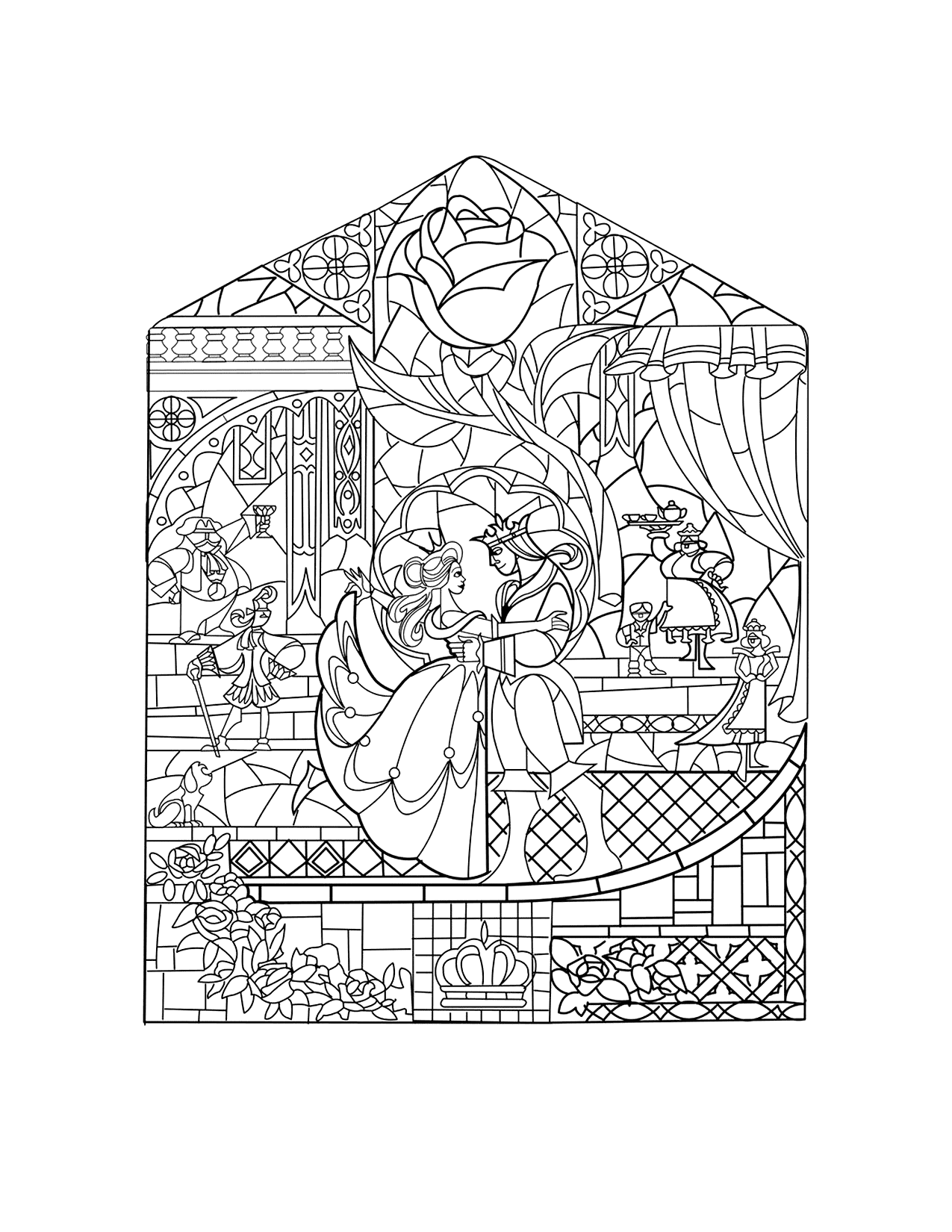 Beauty And The Beast Stained Glass Coloring Page Printable