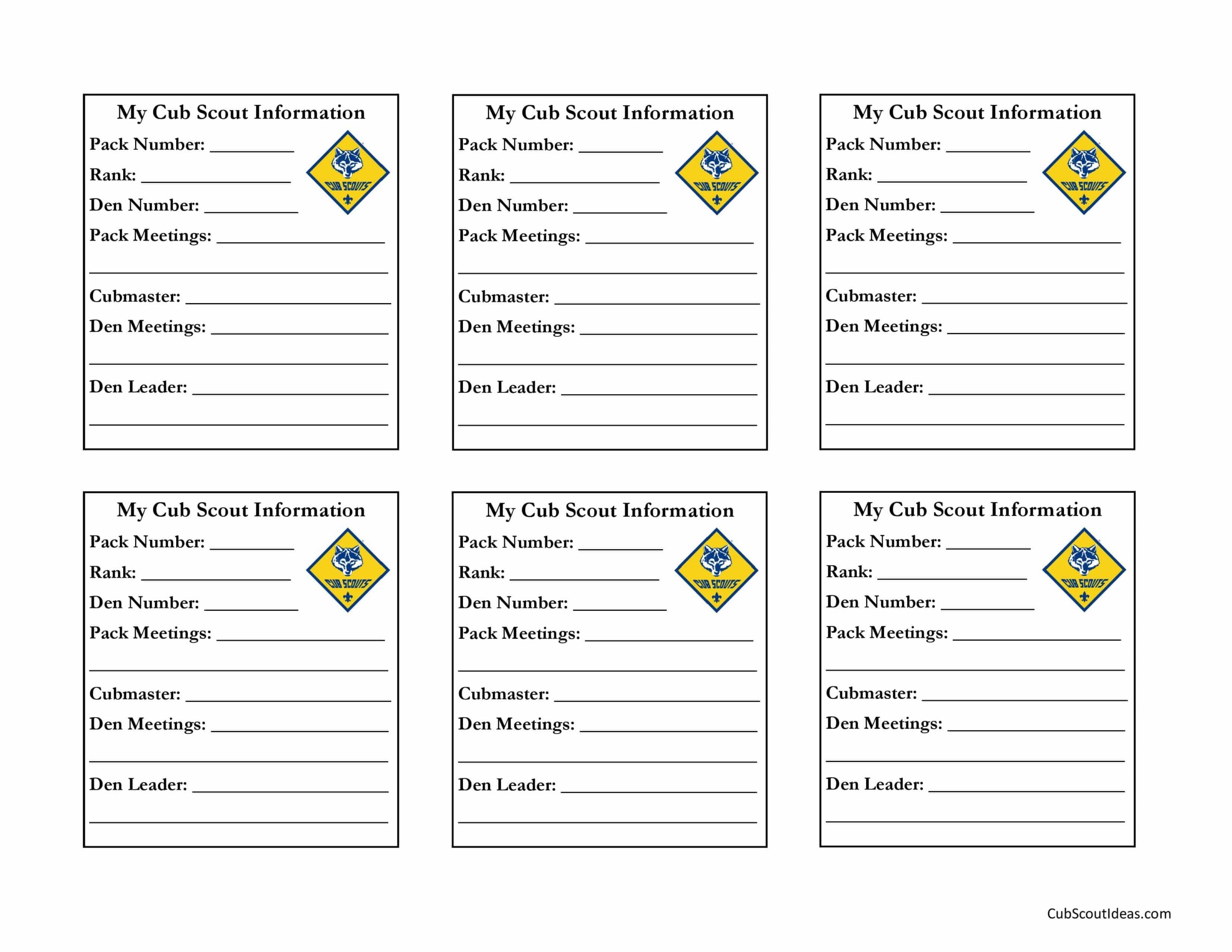 Free Printable Cub Scout Information Cards Cub Scout Ideas