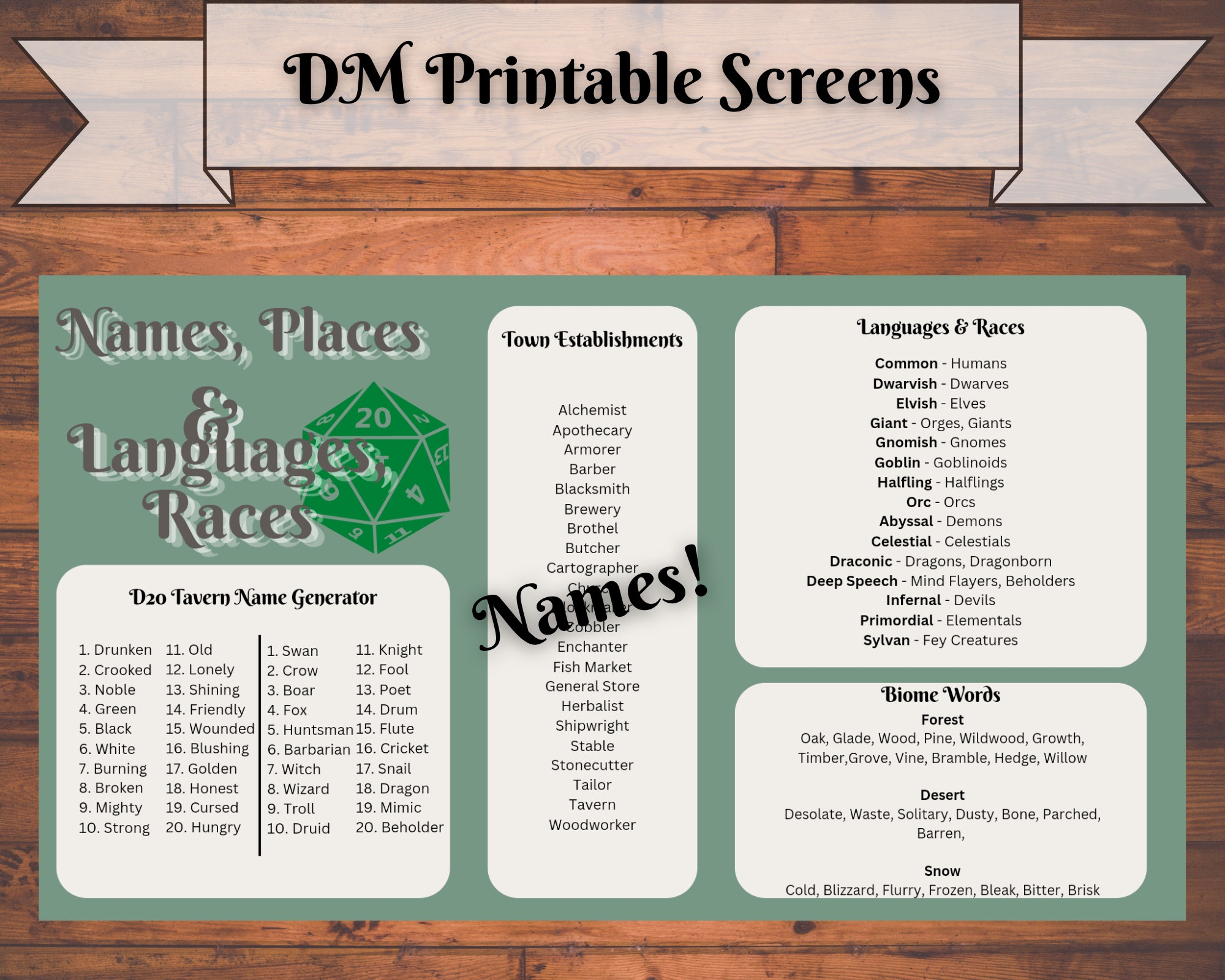 Printable Dm Screen Etsy