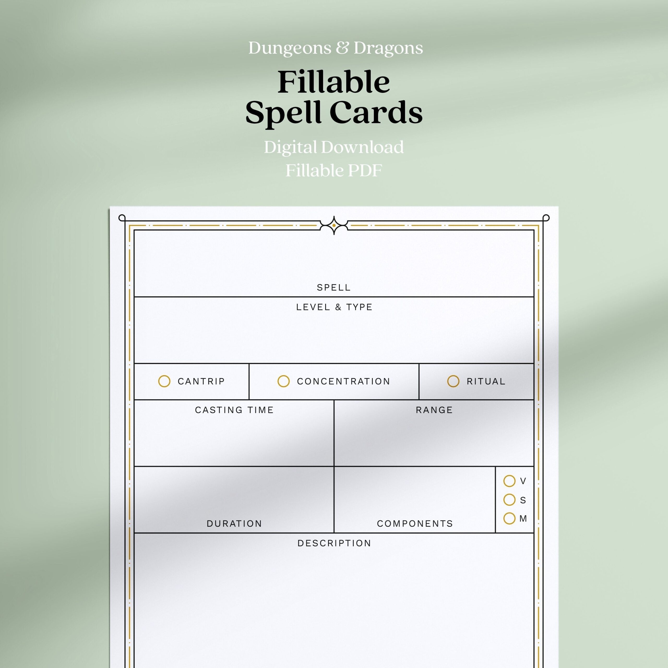 DND Spell Cards ENGLISH VERSION Dungeons And Dragons 5th Edition Blank Pdf Fillable Spell Cards Dnd Gifts For Dms And Players Etsy