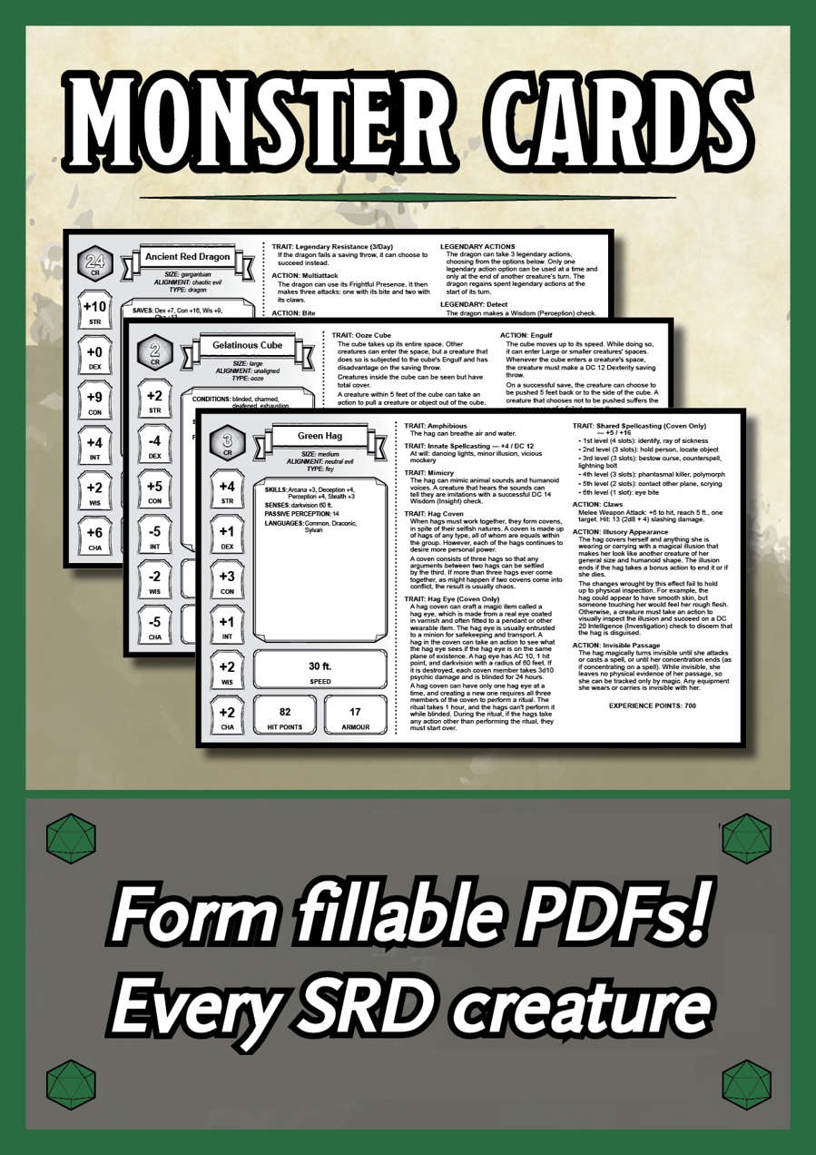D D 5e Printable Monster Cards