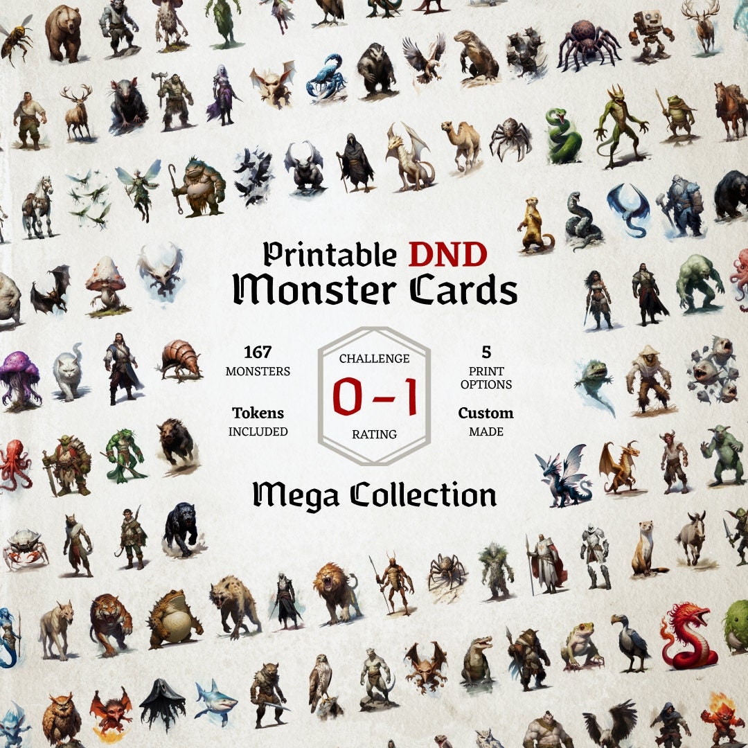 Du0026D Monster Cards Challenge 0 To 1 Mega Collection Tokens Foldable Board Cards Easy Digital Download Monster Manual Stat Blocks Etsy UK