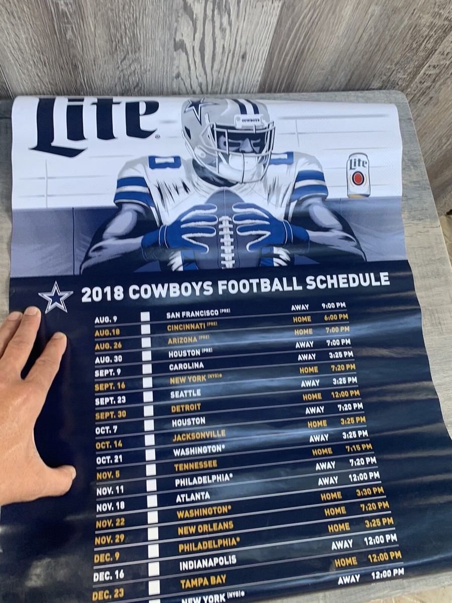 DALLAS COWBOYS NFL 2018 SCHEDULE POSTER MILLER LITE BEER NFL 24×18 Inches