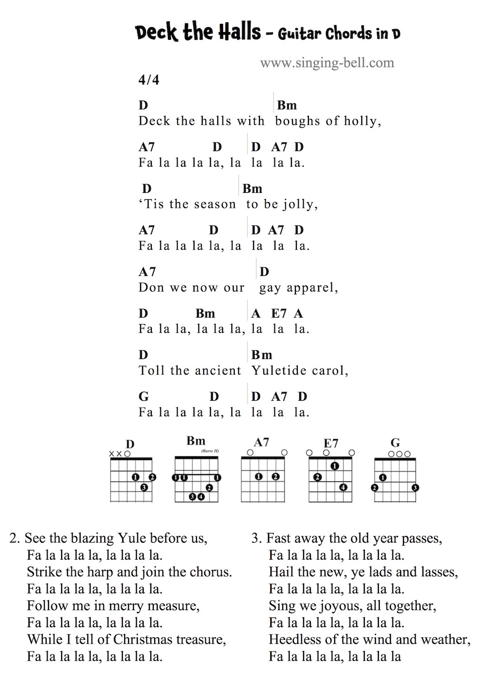 Deck The Halls Guitar Chords Tabs Sheet Music PDF Free