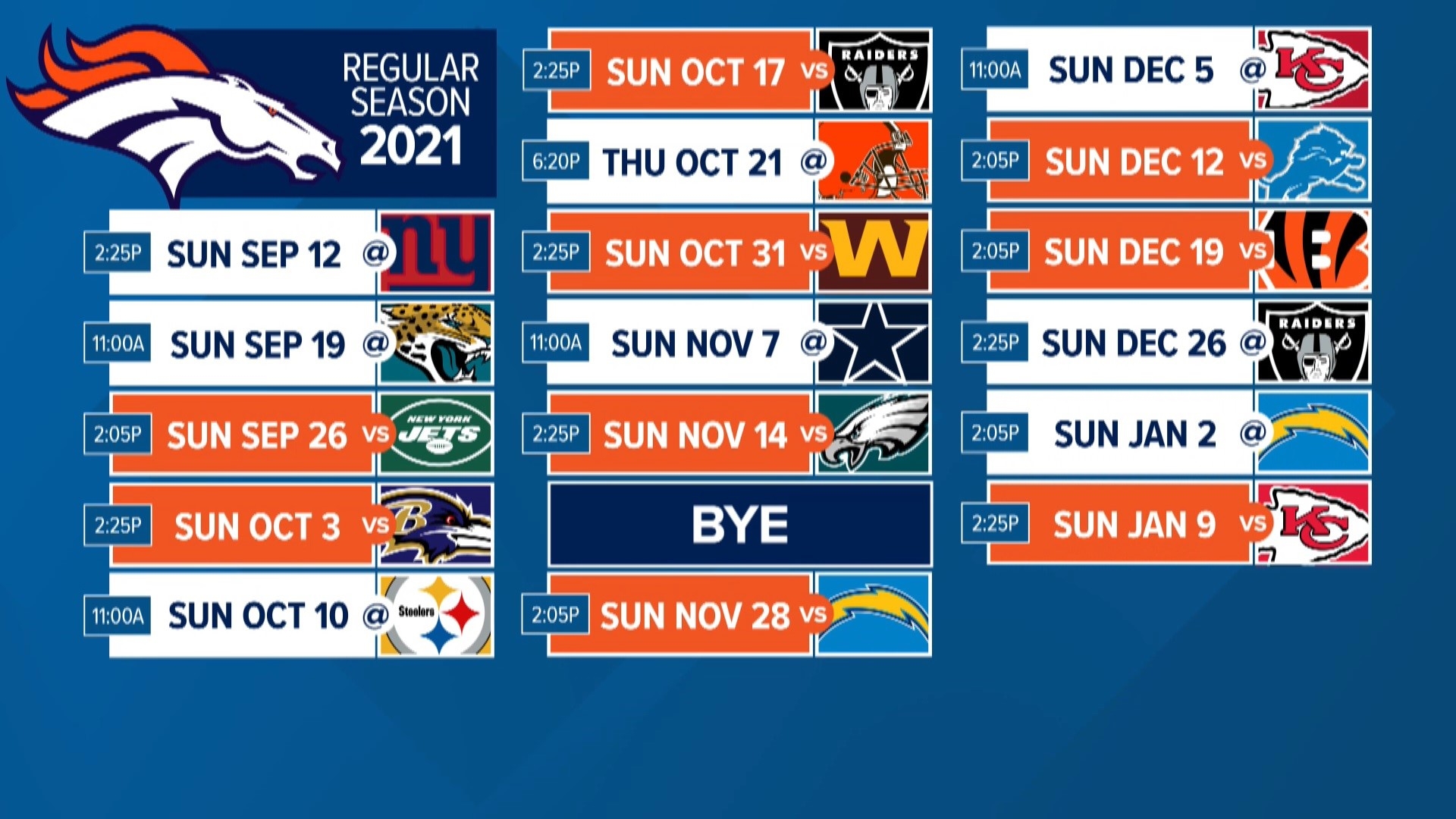 Denver Broncos 2021 Season Schedule Released