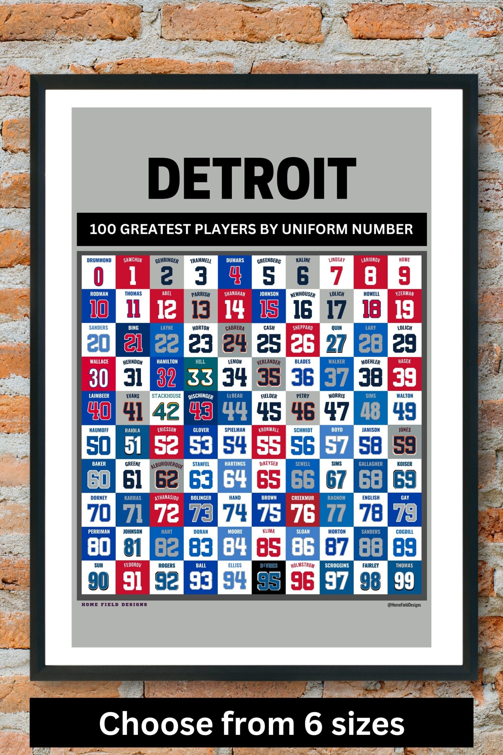Detroit Sports Top 100 Pro Athletes By Uniform Number Poster Greatest Detroit Red Wings Tigers Lions And Pistons Etsy