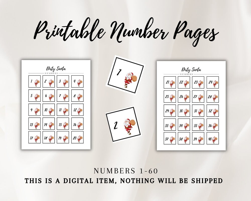 dirty santa numbers printable