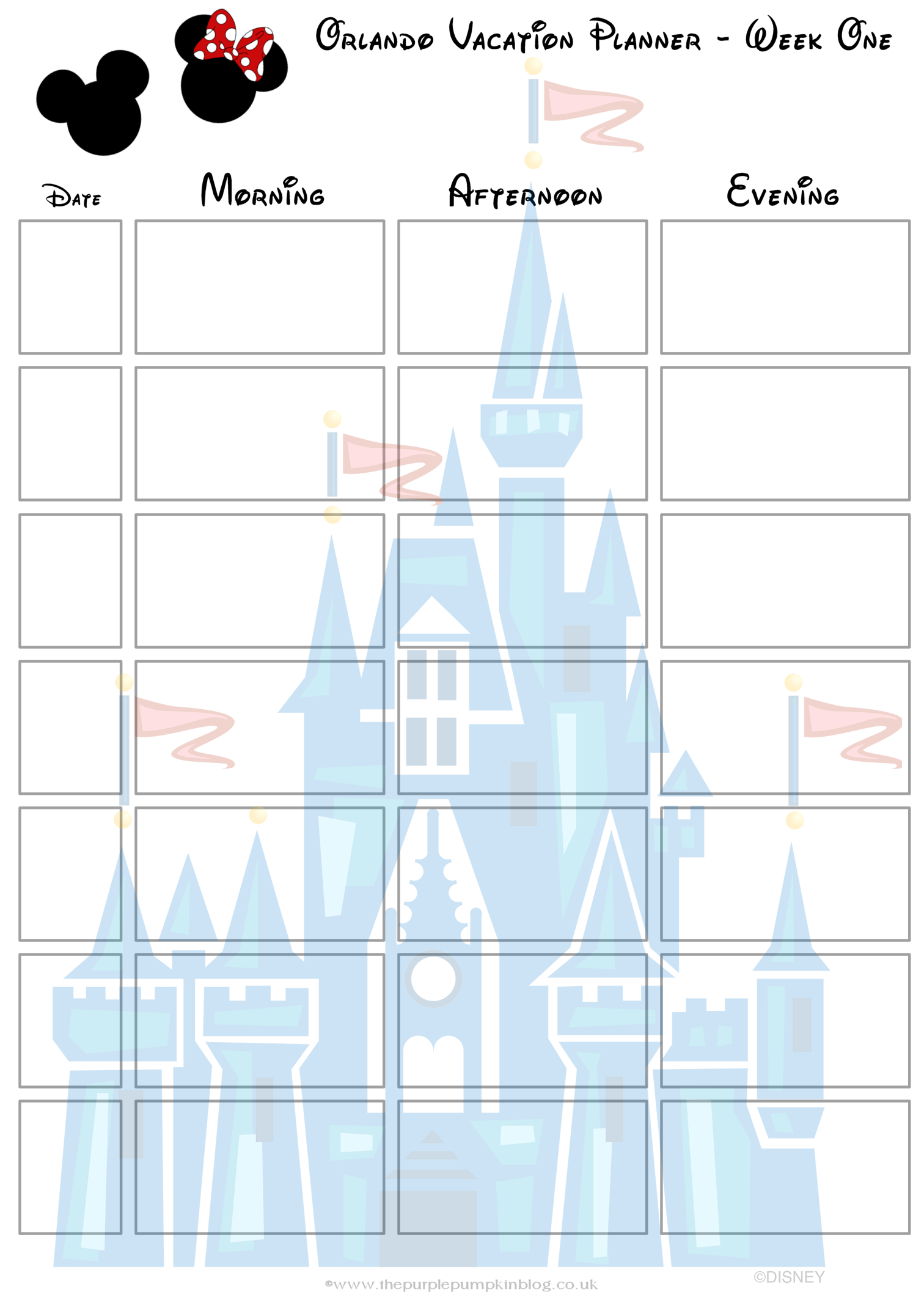 Orlando Walt Disney World Vacation Planner Free Printable